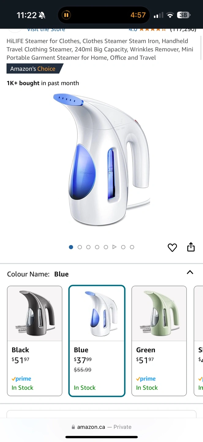 Portable clothing steamer. 240ml capacity. Great for home, office, or travel. Removes wrinkles. New in box Retails over 55 plus tax on Amazon