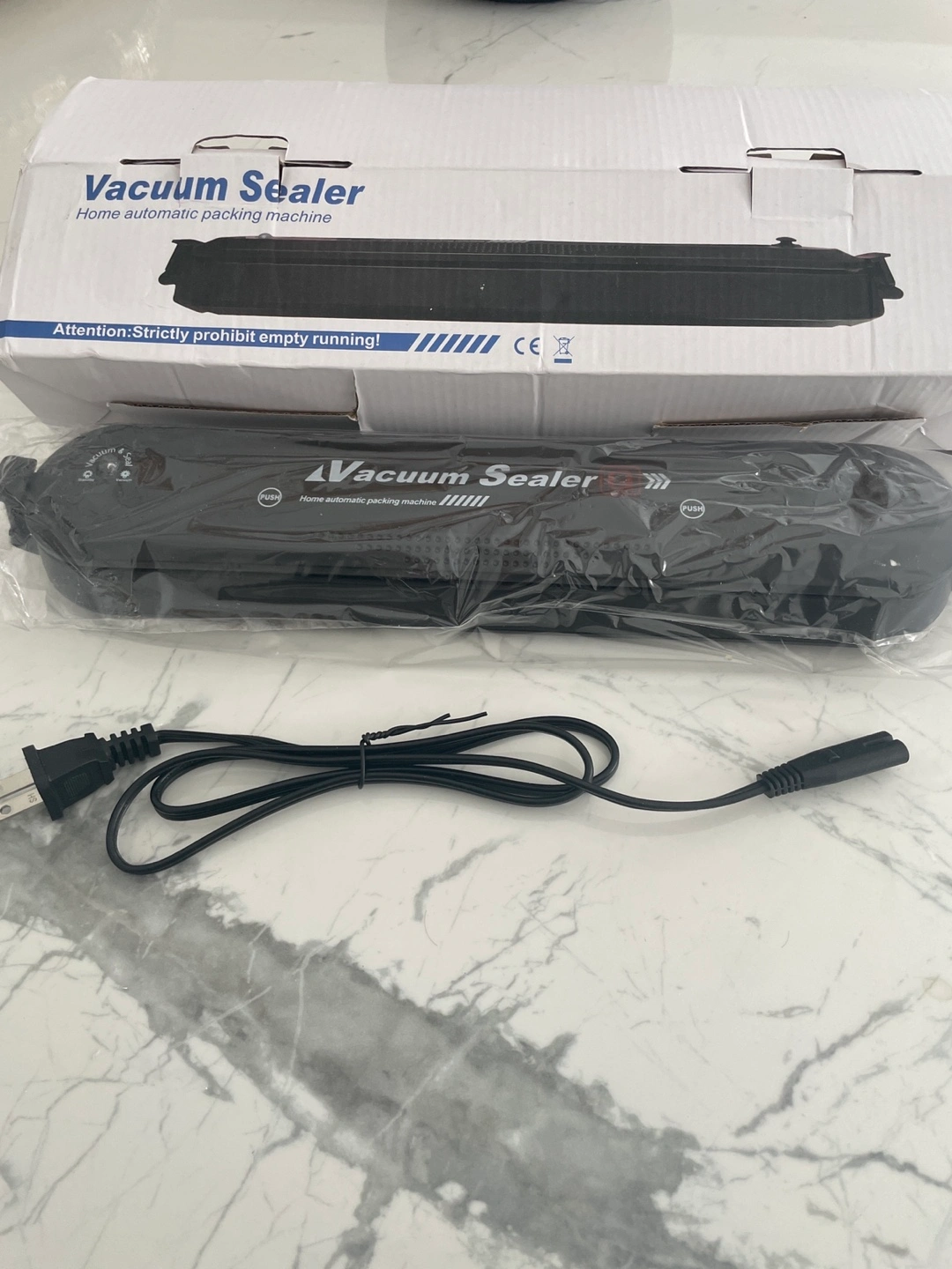 Home automatic packing machine. Brand new, never used. Includes power cord. Compact and easy to use.