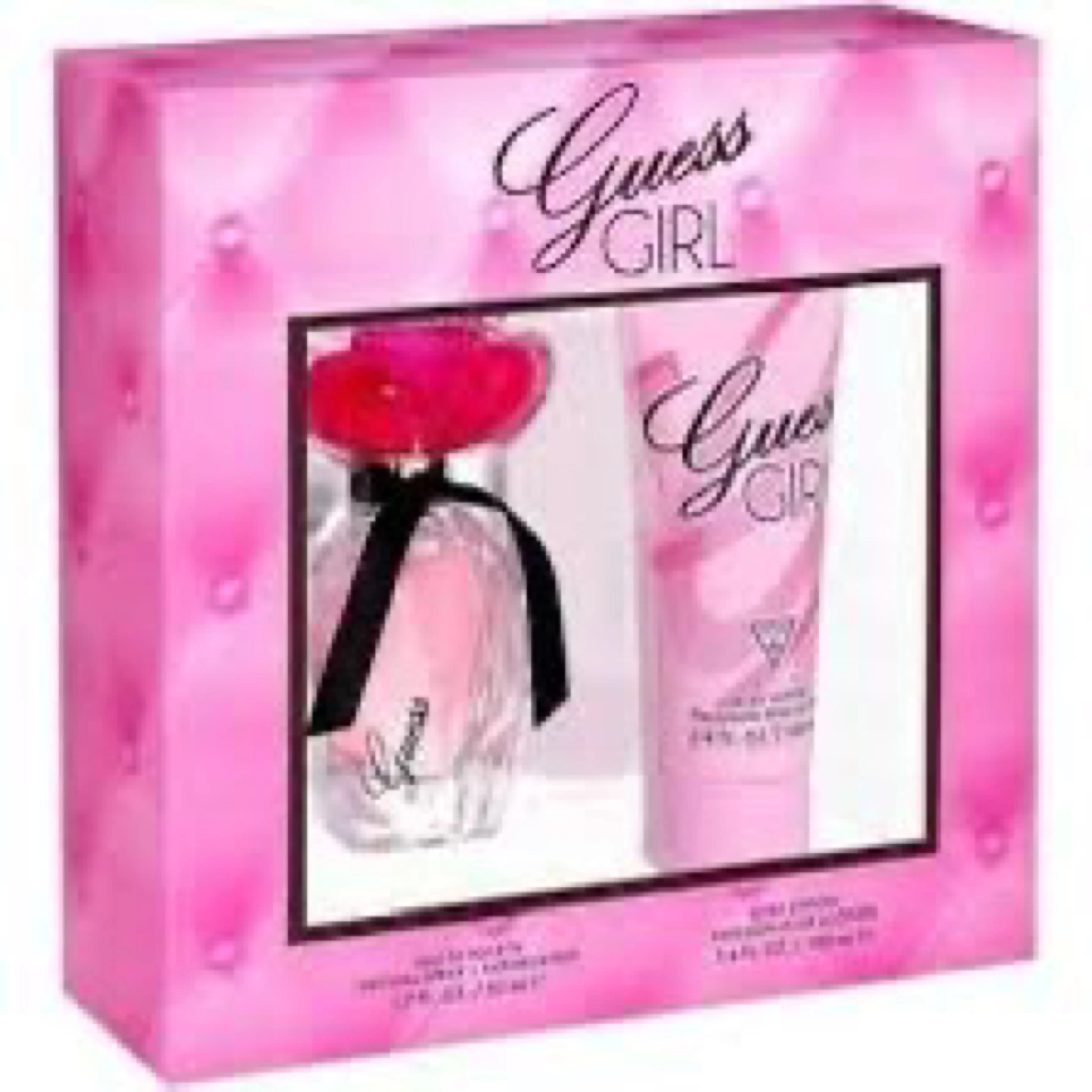 New Guess Girl perfume and body lotion gift set. Includes a perfume bottle and body lotion. Perfect gift or personal use.