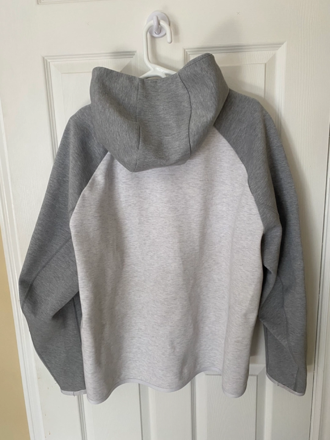 Grey and white colour Nike Tech Fleece Hoodie! Full zip closure. Size XL. Men’s Front pockets. No holes, no rips. Washed but has a few hard to see smudges as the price reflects this. Super comfy. Cash and pick up only, Cawthra and Lakeshore area in Mississauga.