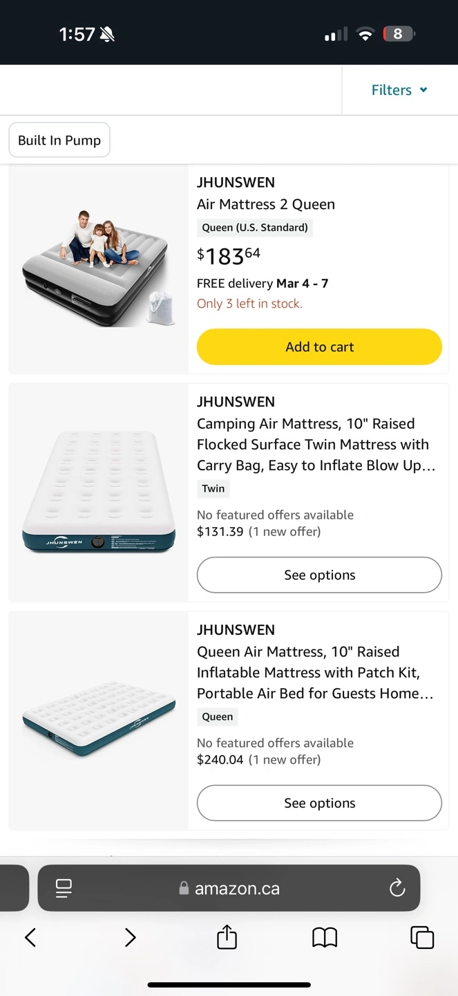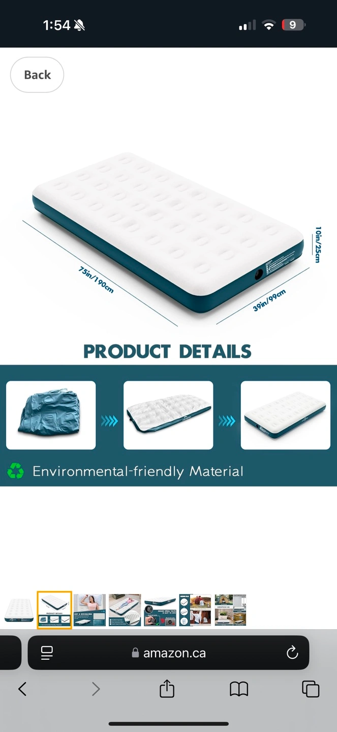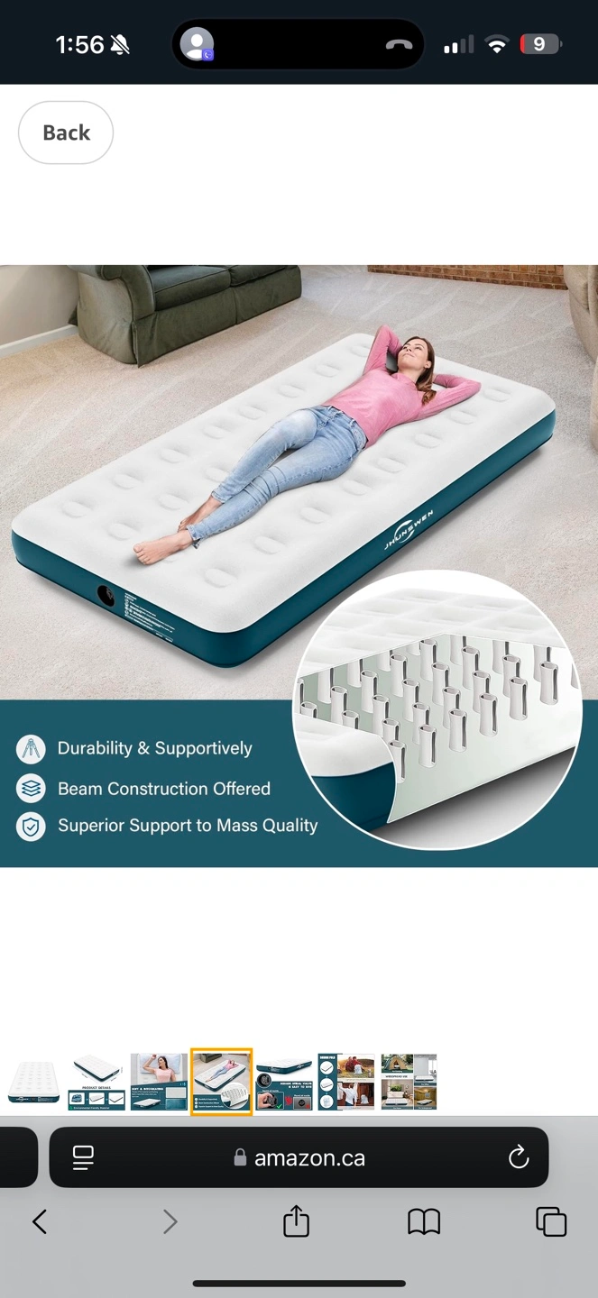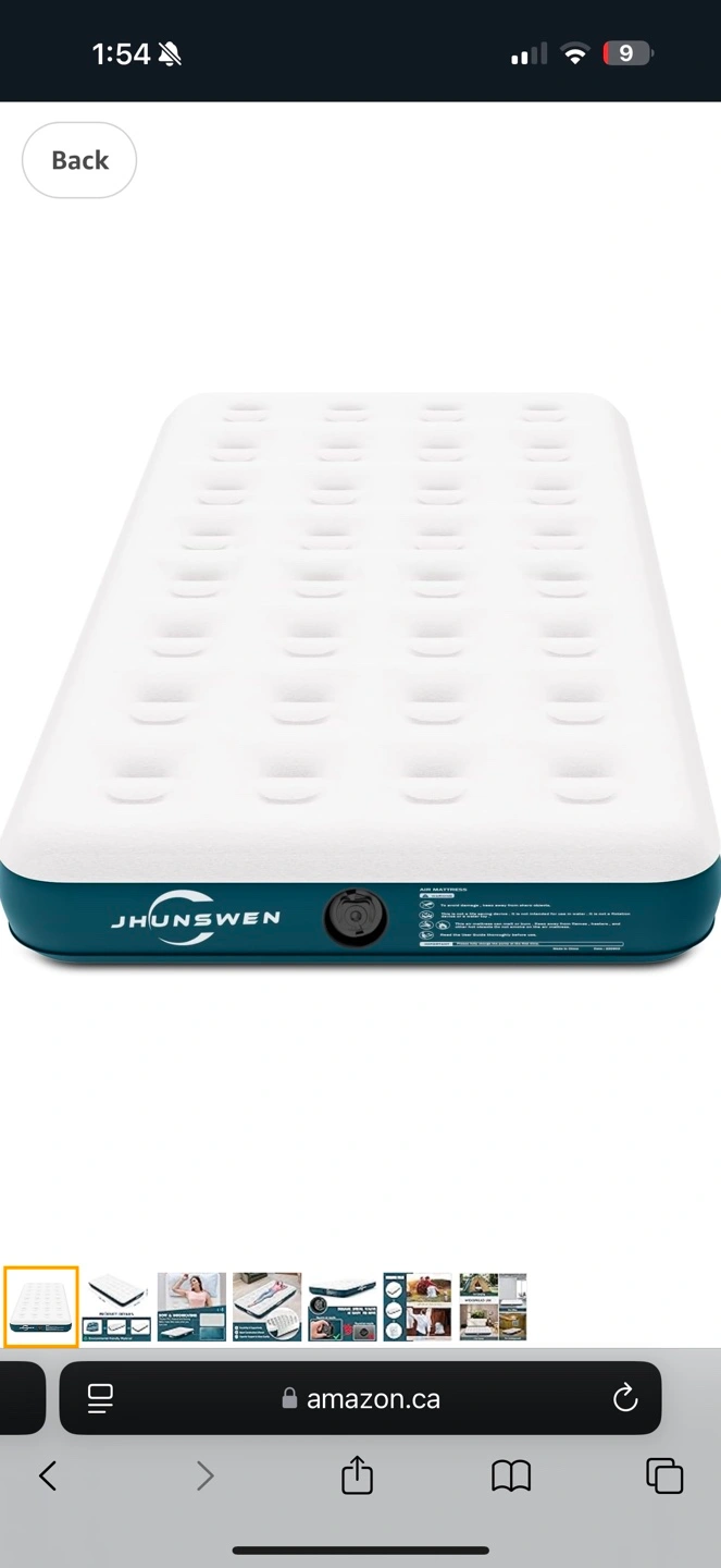 JHUNSWEN Camping Air Mattress, 10" Raised Flocked Surface Twin Mattress with Carry Bag, Easy to Inflate Blow Up Bed, Portable Inflatable Air Bed for Tents Travel Home Guests, 330lb MAX (No Pump) Retails over 100$ My price is 20$ new in box