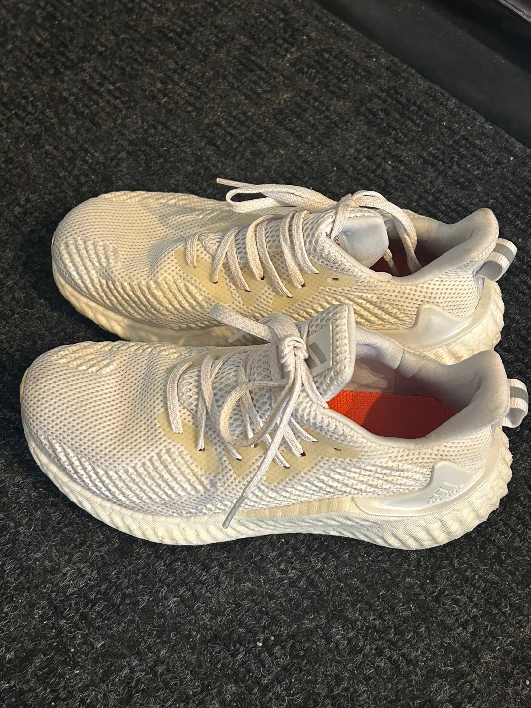 White Adidas Ultraboost running shoes. Women's size 6. Good condition. I wore them only twice after purchasing.