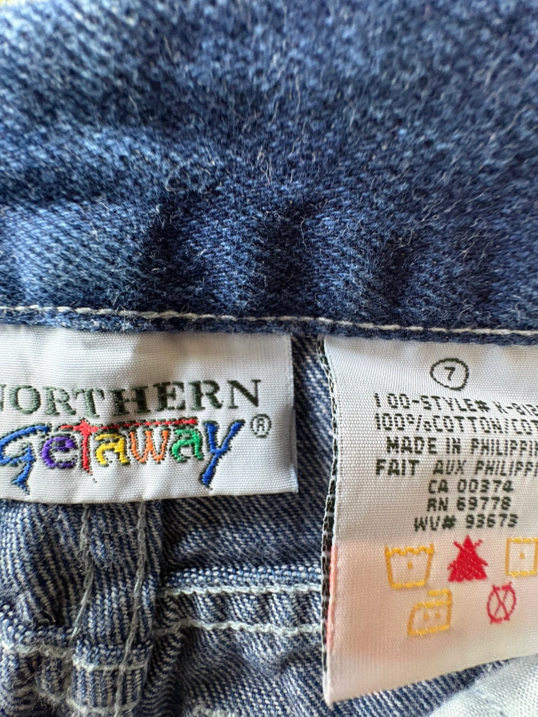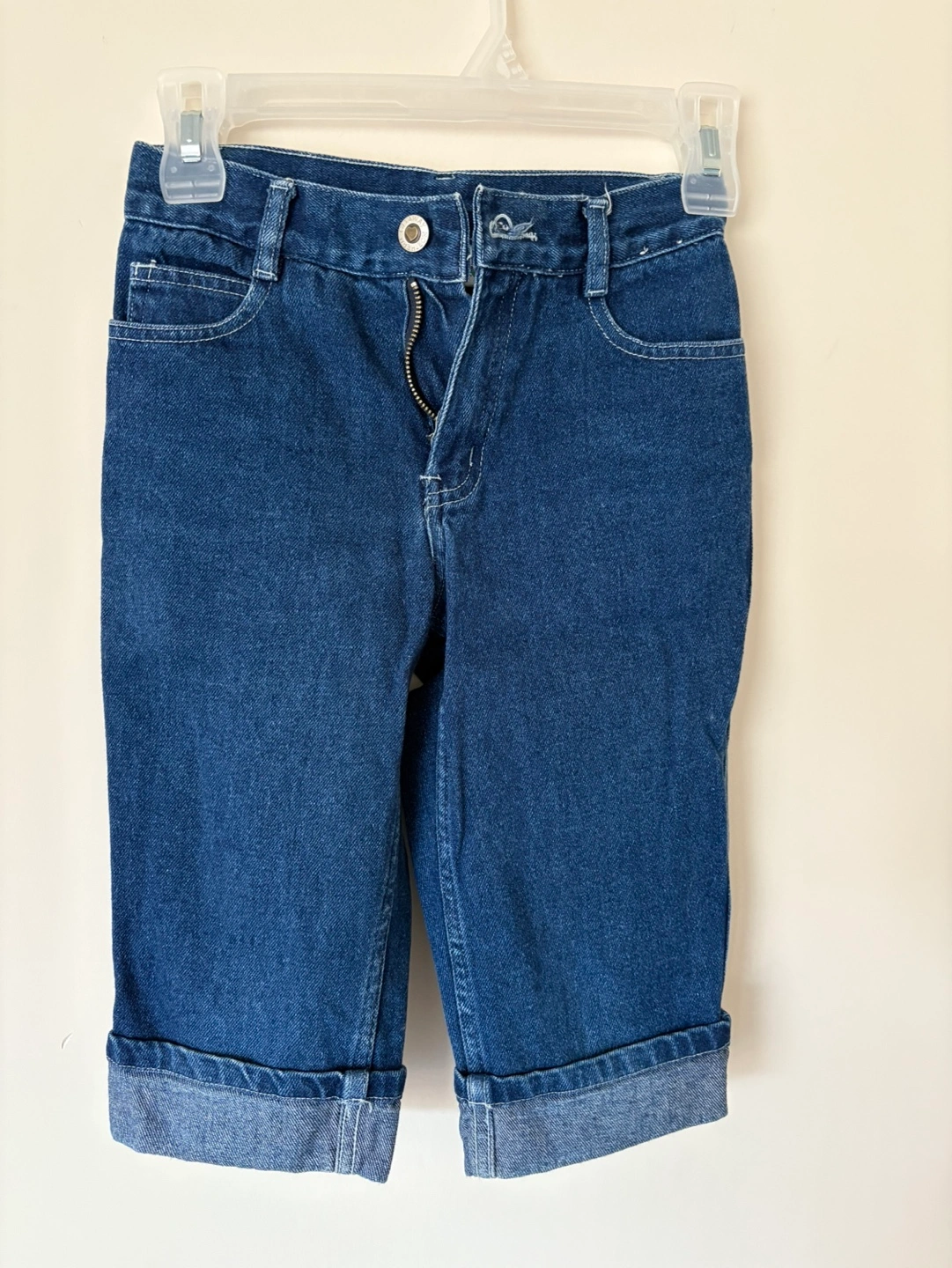 Dark wash denim knee- length shorts. Rolled cuffs. New and not worn. 100 % cotton. Northern Getaway. Size 7. Made in the Philippines.