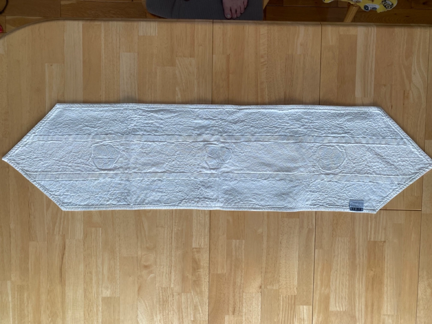 •Material: 100% Cotton (see pic) •Size: Length- 48” x width - 12” •Off-white, green cotton table runner embroidered details •Machine washable, Made in India (see pic) •Excellent condition, clean, no breakage •smoke-free, pet-free environment **LOCATION: Jane & Lawrence**