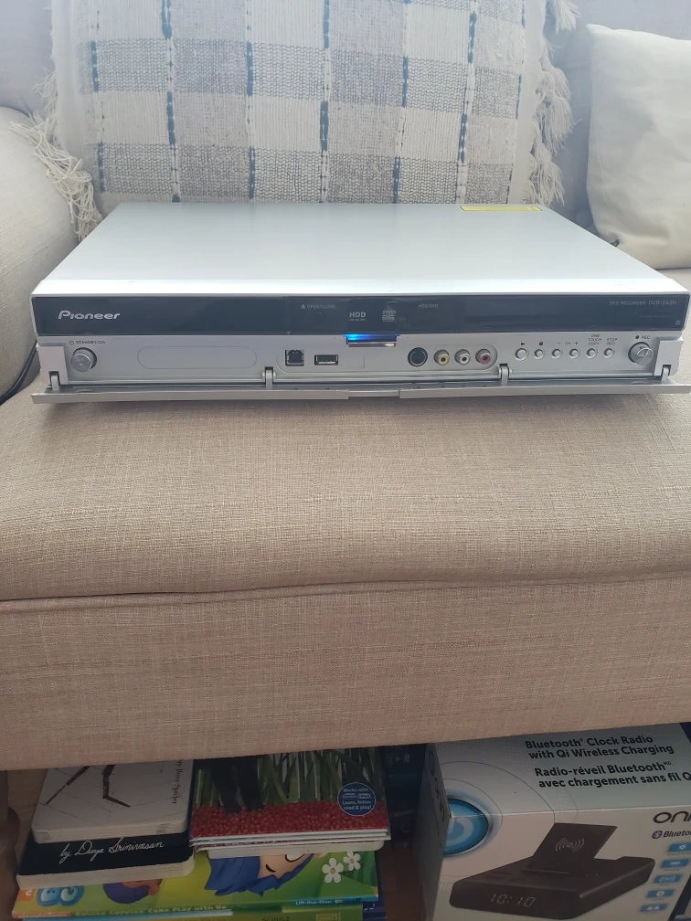 Pioneer HDD Recorder. Silver colour. Includes power cord. Record all your favorite shows and movies with very inexpensive DVD AND CD DISKS. it includes a package of 20 HP DVD +R recordable DVDs.