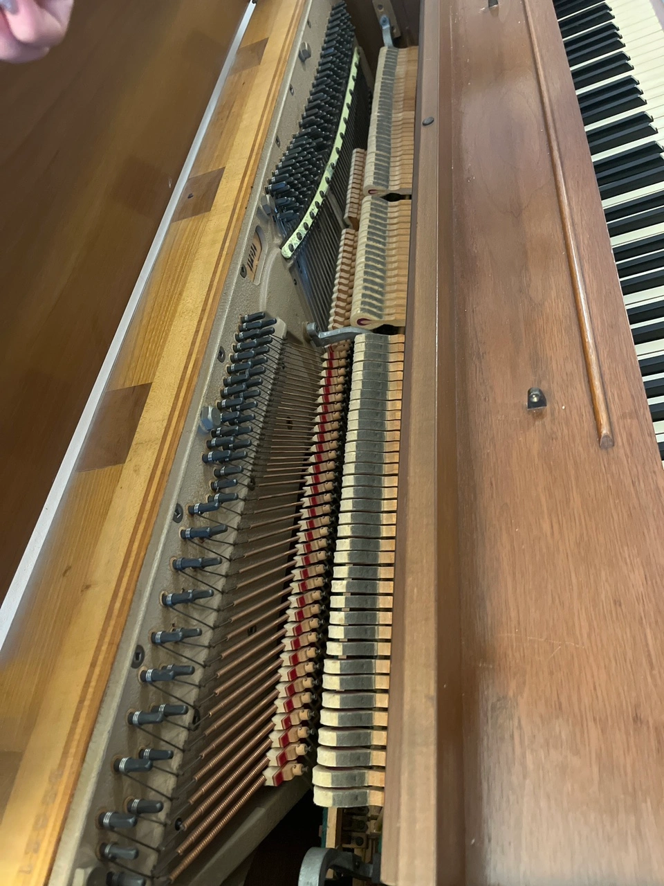 Appartement size Piano 48โ L x 20โ D x 31โ High Includes matching bench. Piano needs a good tuning but works perfectly.