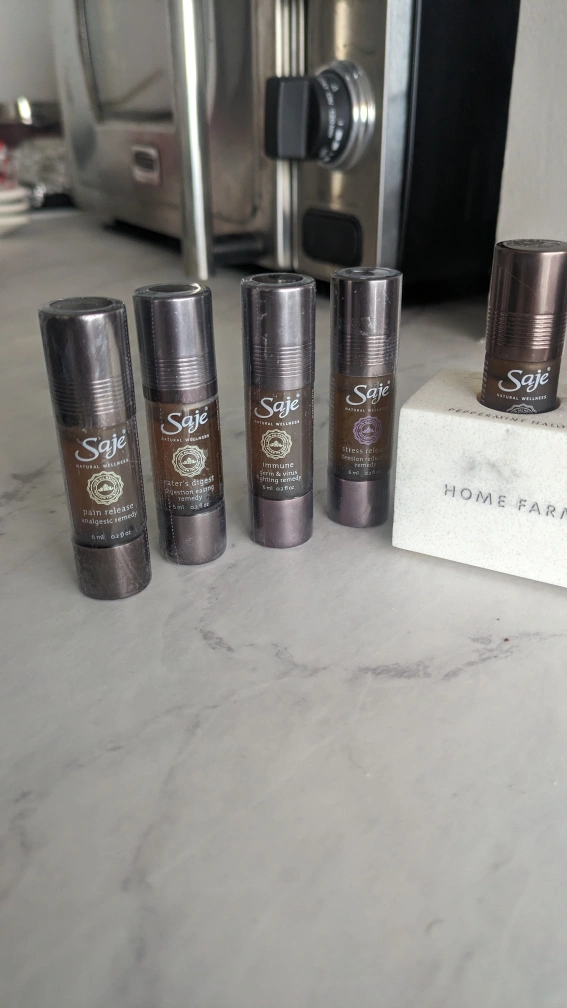 Sage Roll on essential oils 10 × 6ml tubes + Home Farmacy marble holder Please note: exp dates between 2021-2022 but oils have never been used and some still have seal Locations: Quick easy pick up by Scarborough Town Centre most days Pick up around Union station on days I'm at the office for smaller items I can bring with me on the train