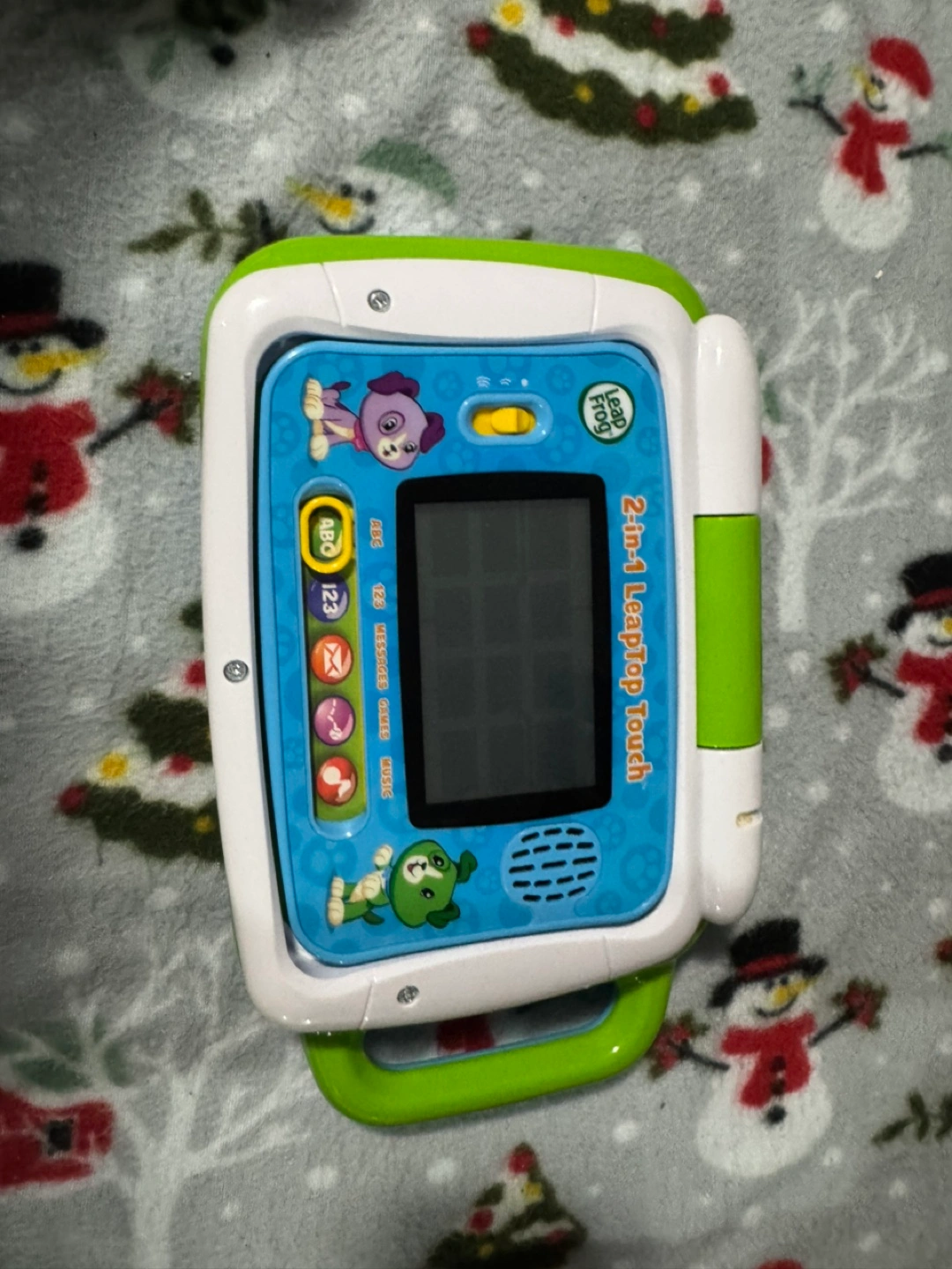 Pre-owned LeapFrog 2-in-1 LeapTop Touch. Interactive learning toy. Features a screen, keyboard, and various learning activities. Great for preschoolers.