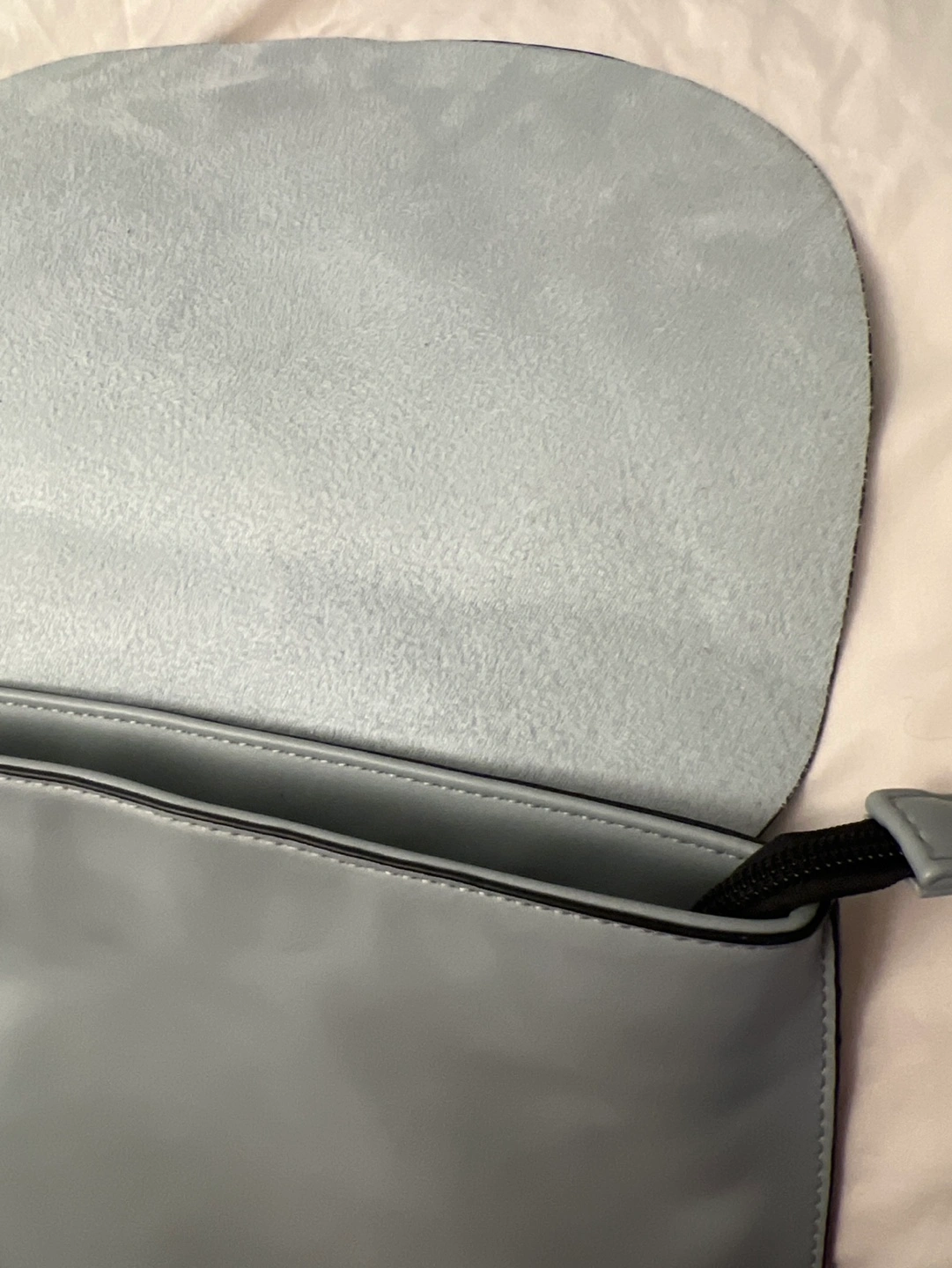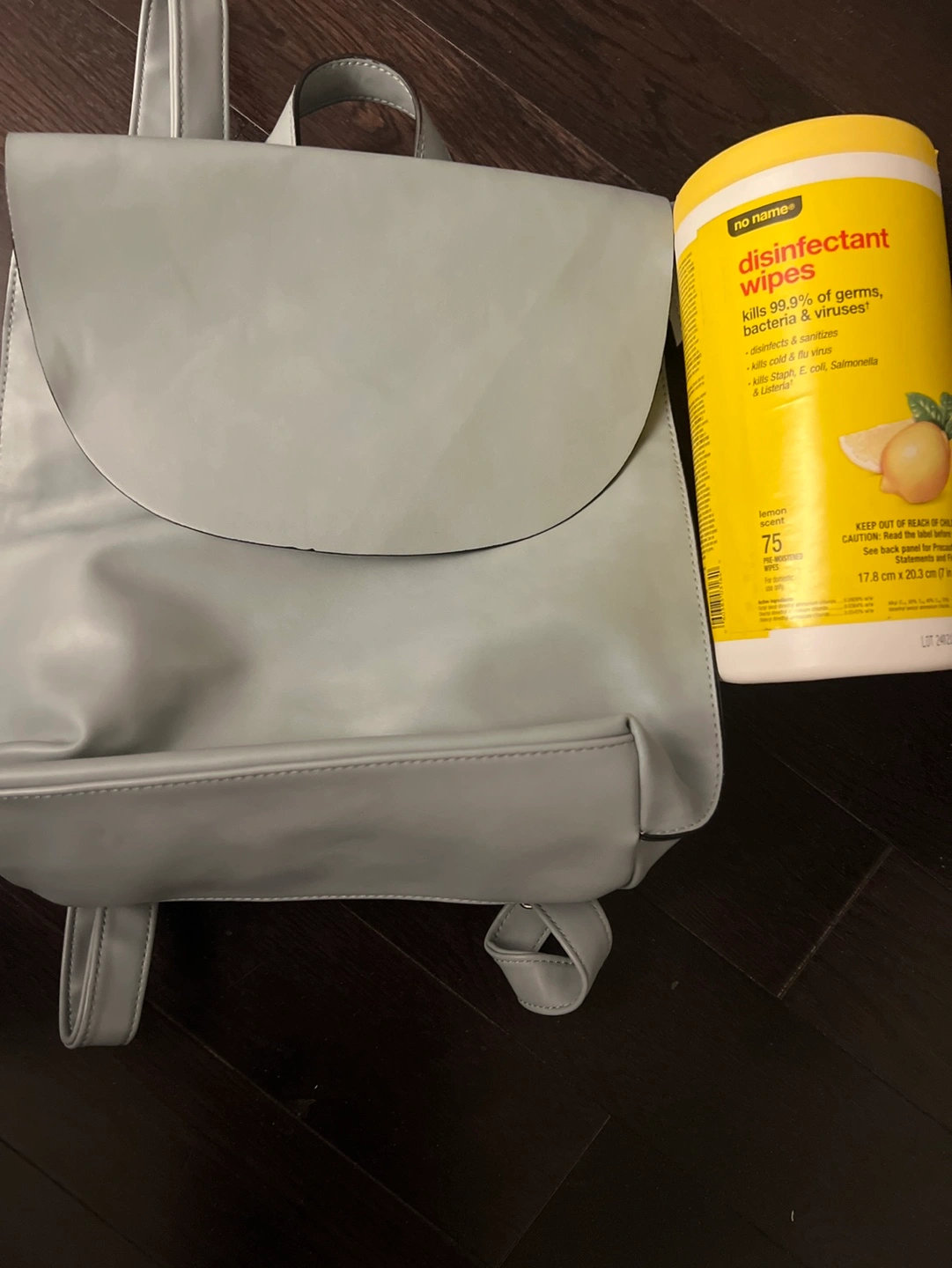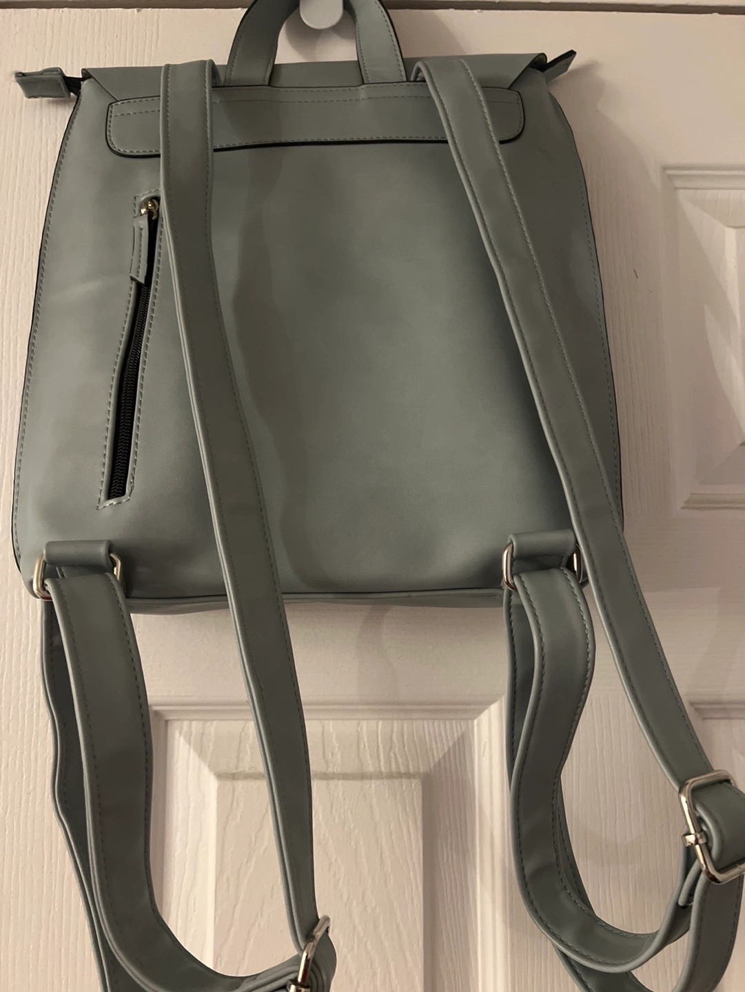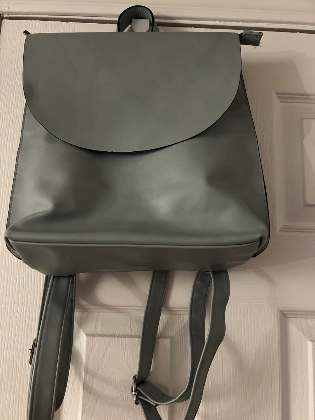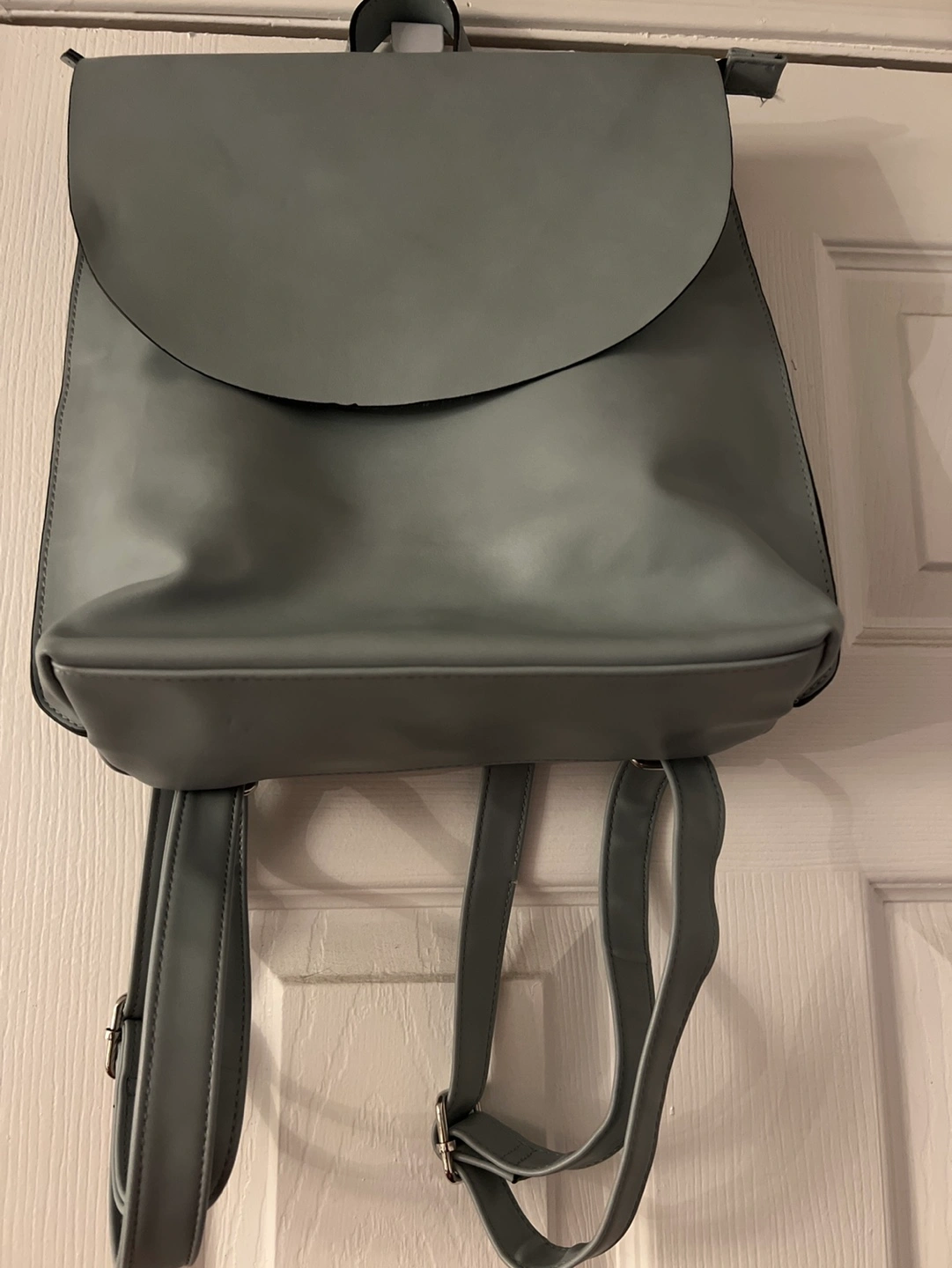 Small baby blue backpack. Features adjustable straps and a zipper closure. Super soft real leather bag. Great quality. Excellent for everyday use. This is new without a tag *Buy with confidence!
