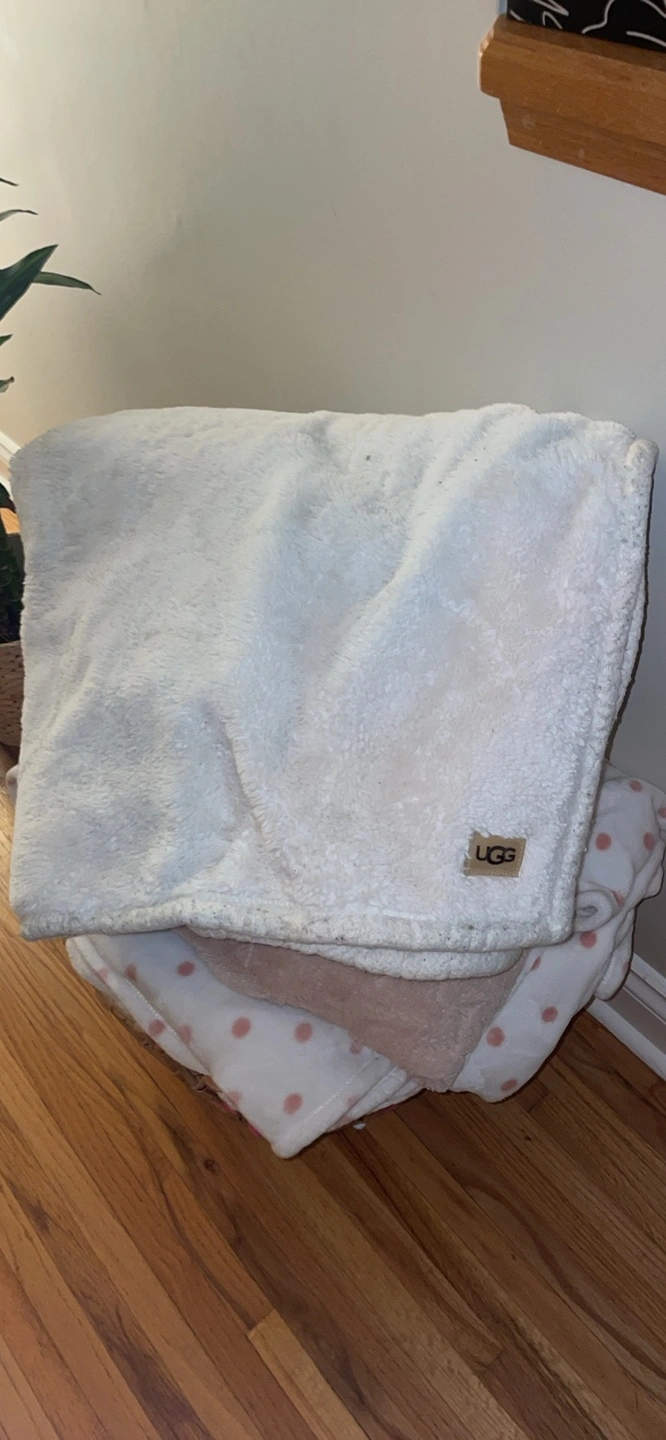 Cozy and soft UGG throw blanket. Perfect for snuggling on the couch. Off-white colour. Used