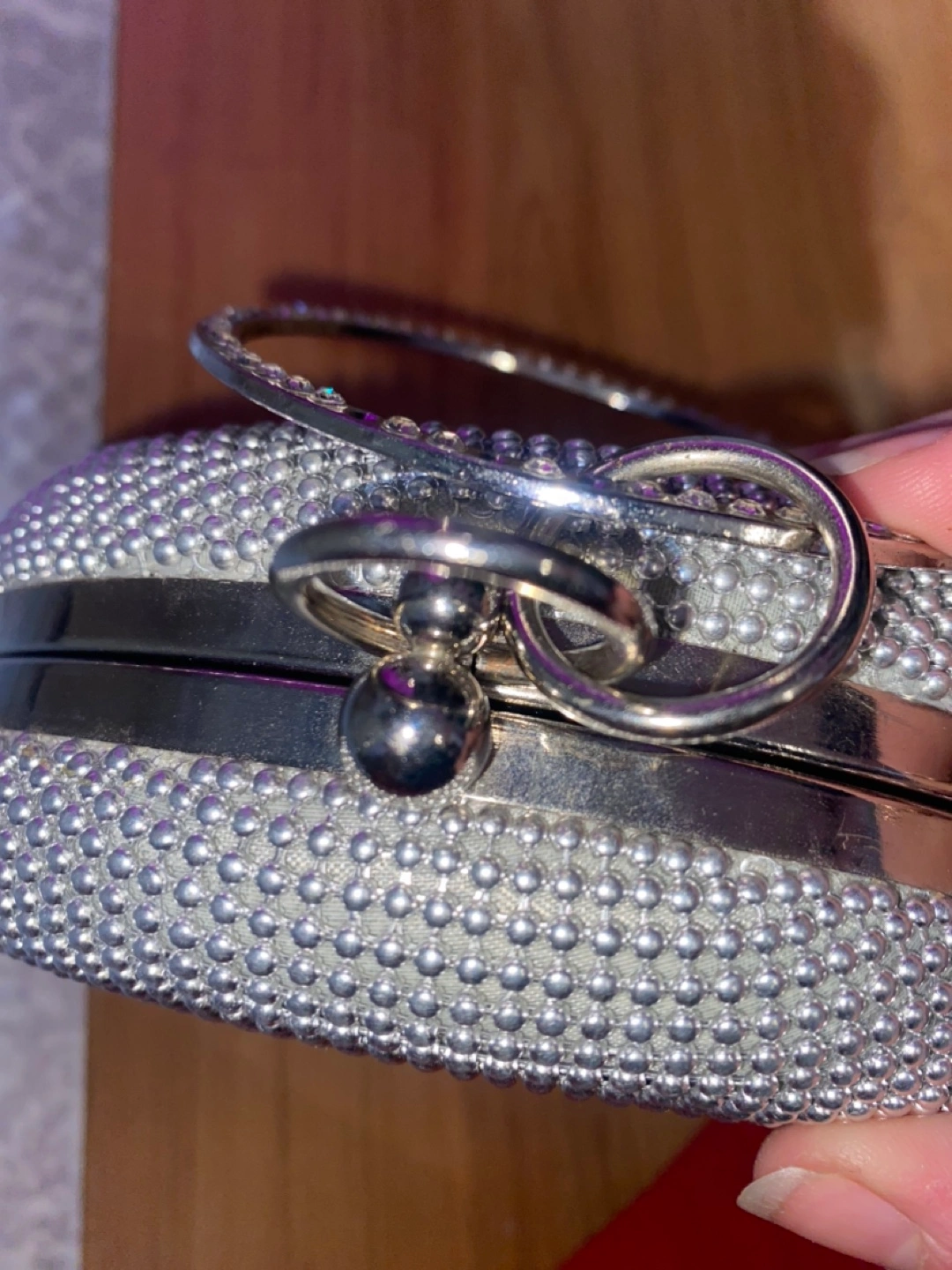 Small sized clutch bag. Sparkly and silver colour. Clean no stains. Smoke Free & Pet Free Household. Pick Up Only, No Delivery. Cash Only. Only reach out if interested in purchasing the item. Do not waste my time.