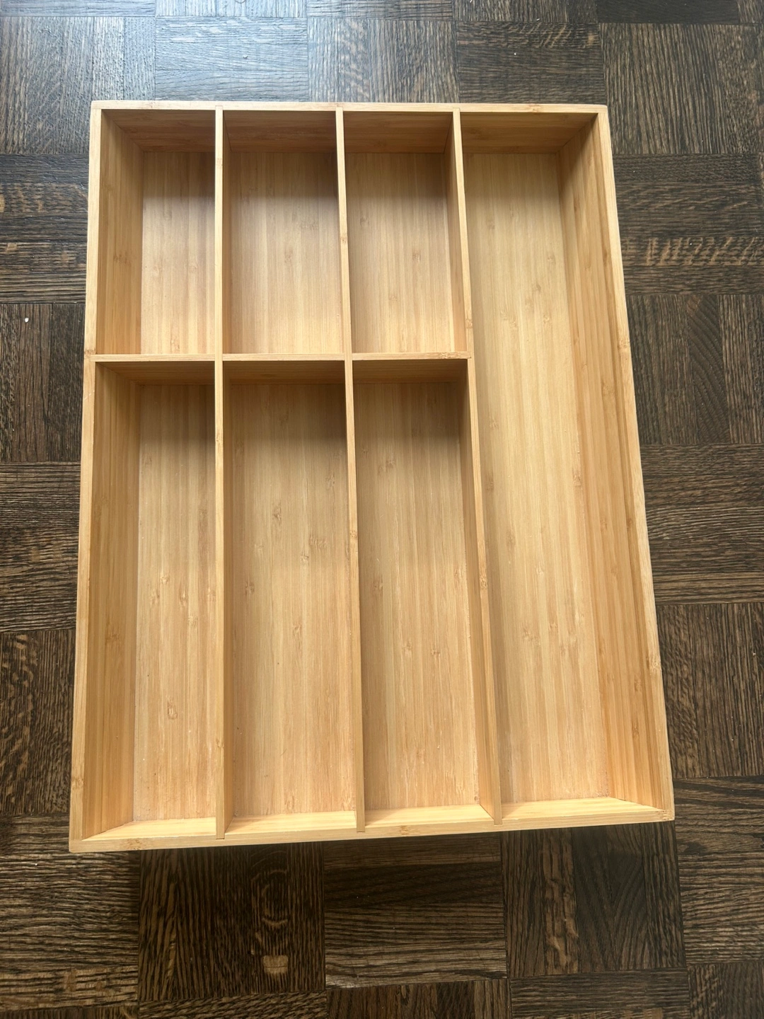 Seven compartment organizer. Made of bamboo. Great for kitchen drawers. Like new in condition. We are moving to our home country that’s why I am selling it. Pet free and smoke free home If you like to buy please contact me before march 28 . Pickup and cash only .