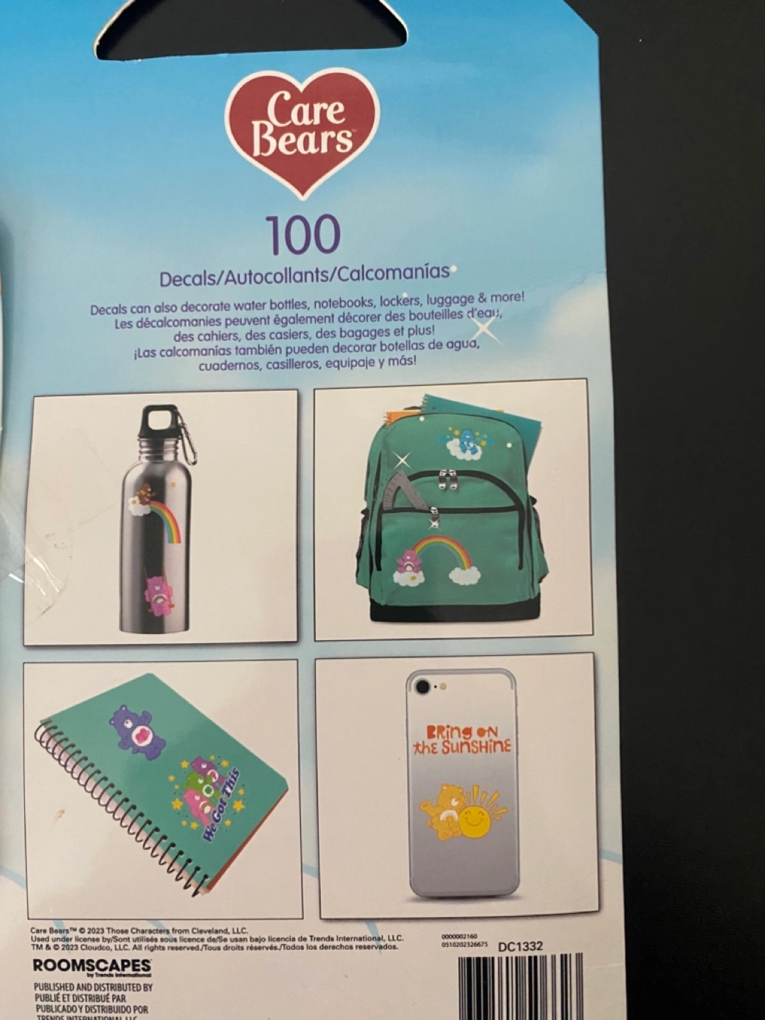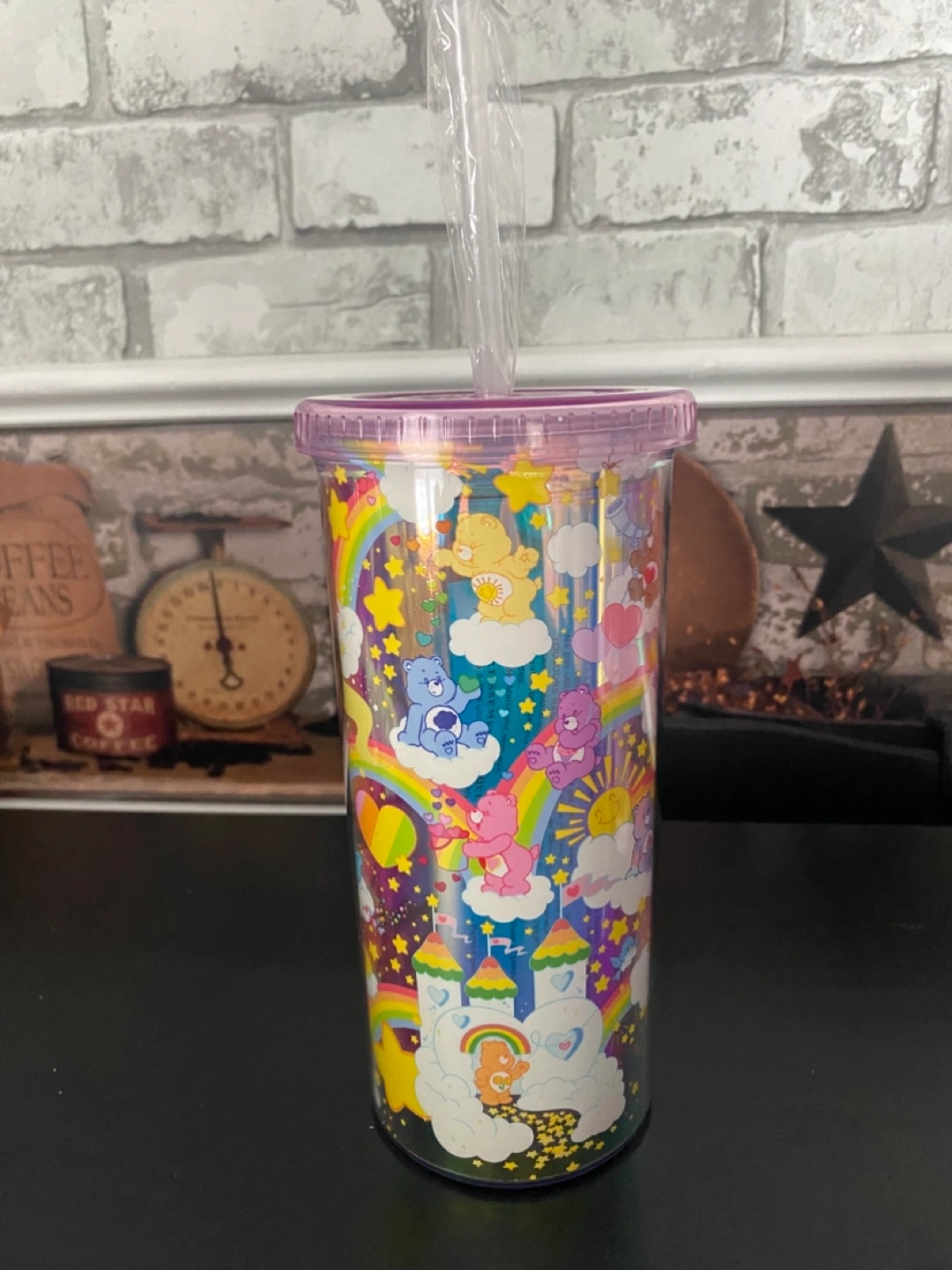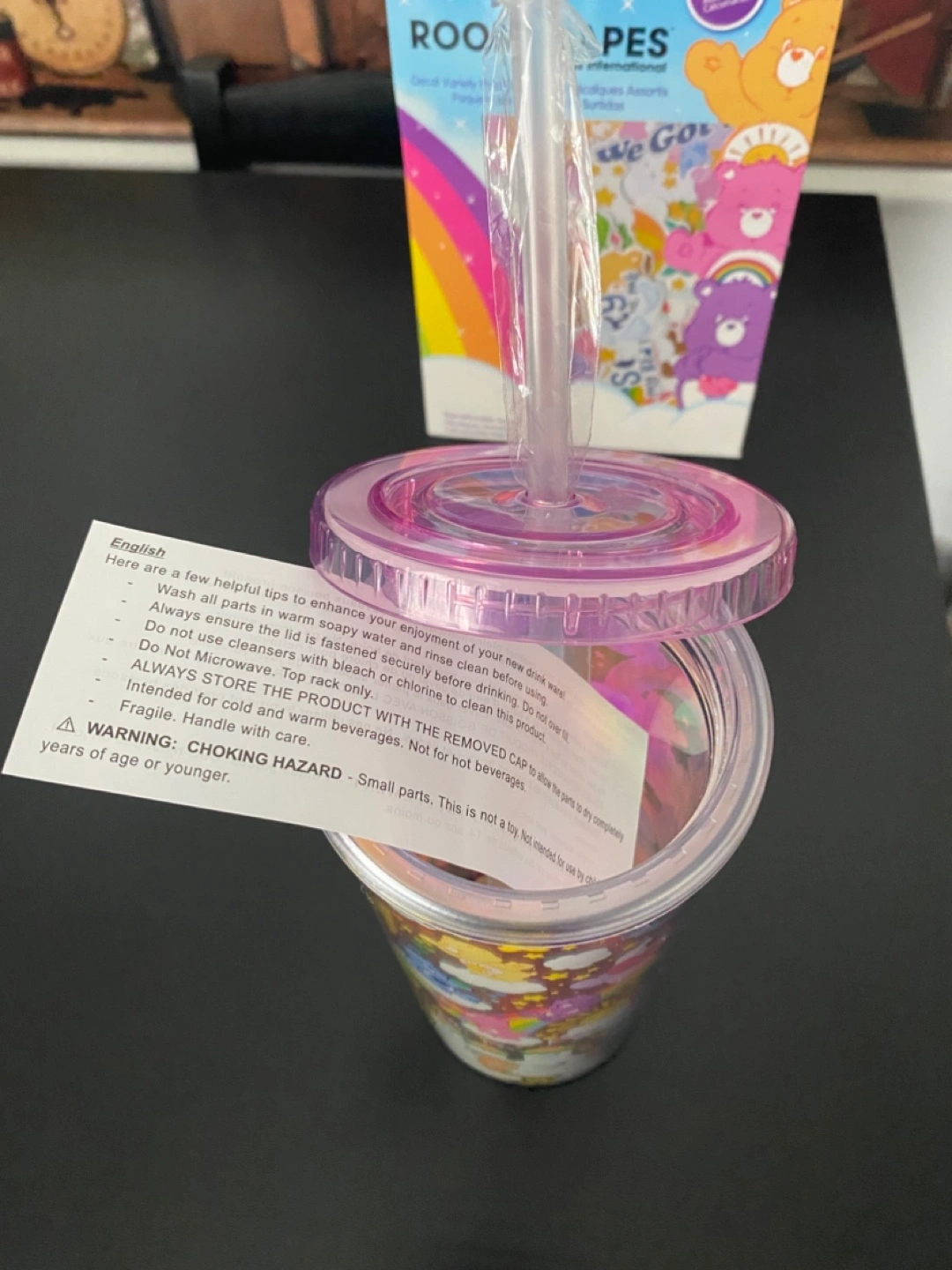 Clear plastic Care Bears 20 oz tumbler. Includes straw still wrapped with tag for $12.99 Package of 100 Care Bears RoomScapes decals. Easy to apply and remove. All new! Excellent Condition! All for $10 Cash and pick up only, Cawthra and Lakeshore area in Mississauga.