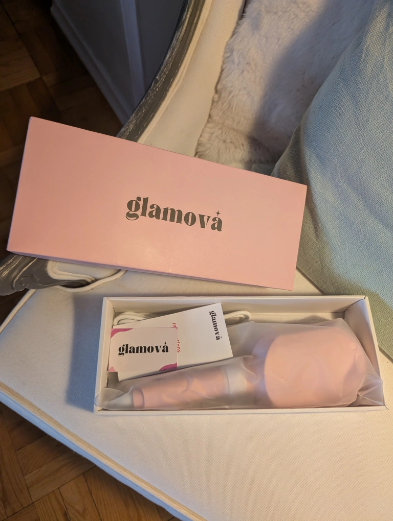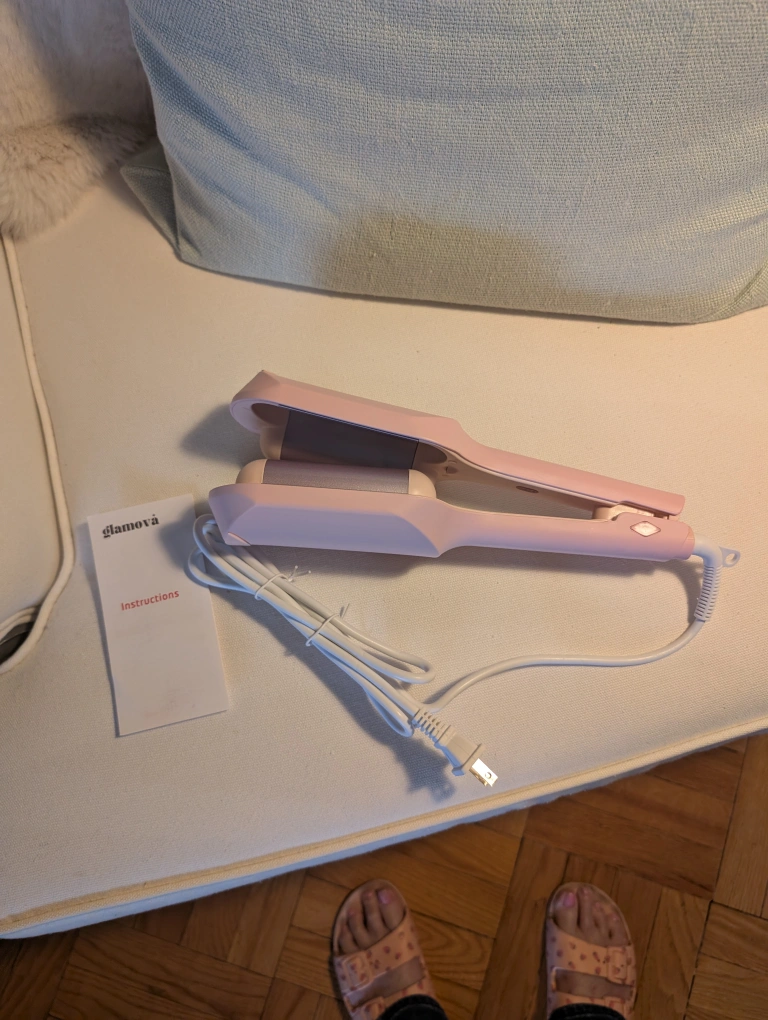 New, unused Glamorá hair beachwaver Pink colour. Includes instructions and power cord. Comes in original box.