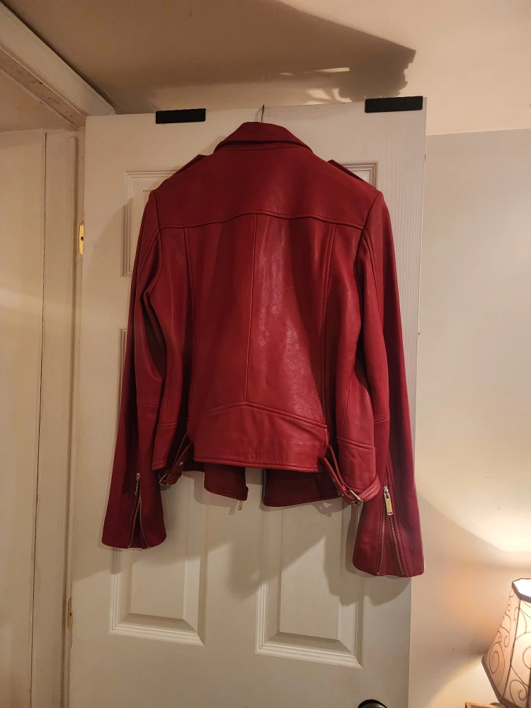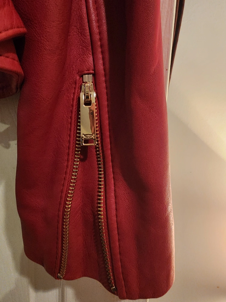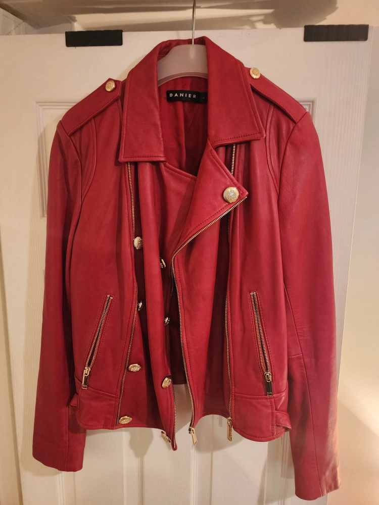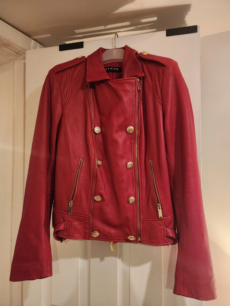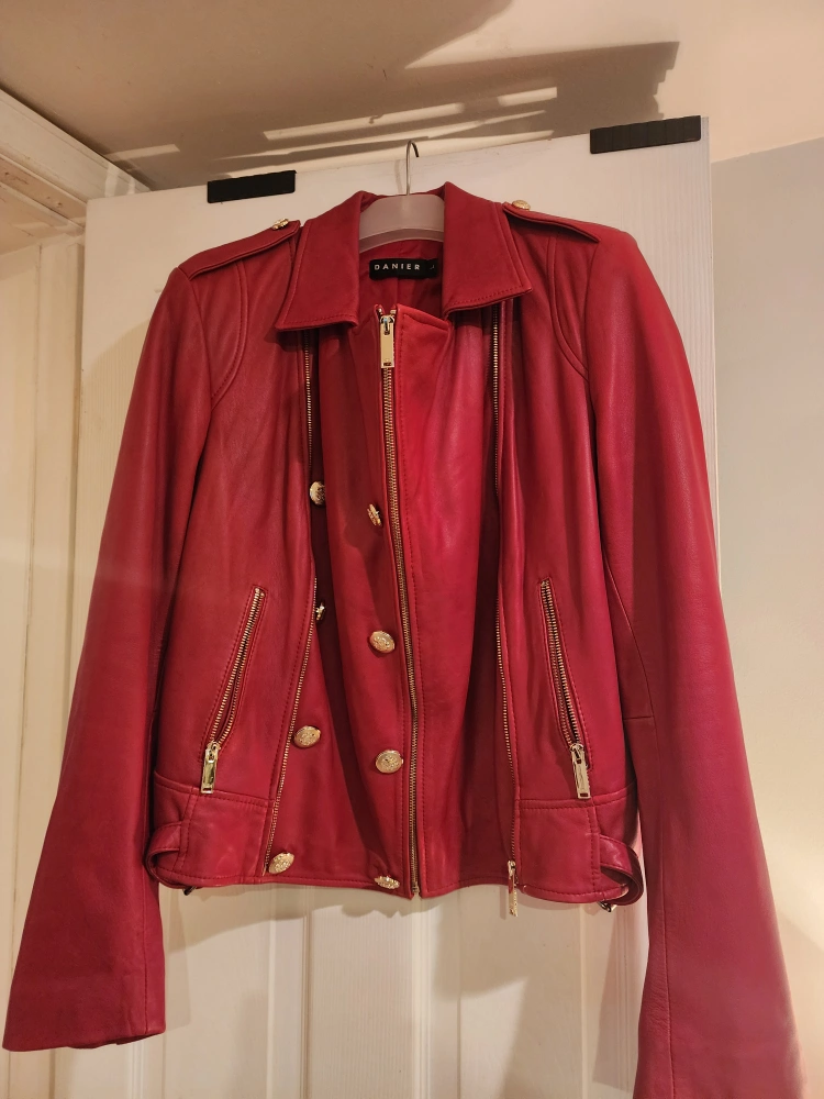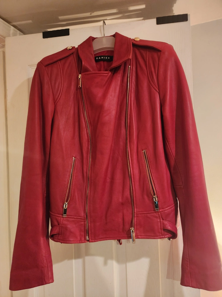 Gorgeous red Danier leather jacket. Asymmetrical zipper closure. Gold-toned hardware. Bell sleeves. Multiple pockets. 10/10 condition. price is firm.