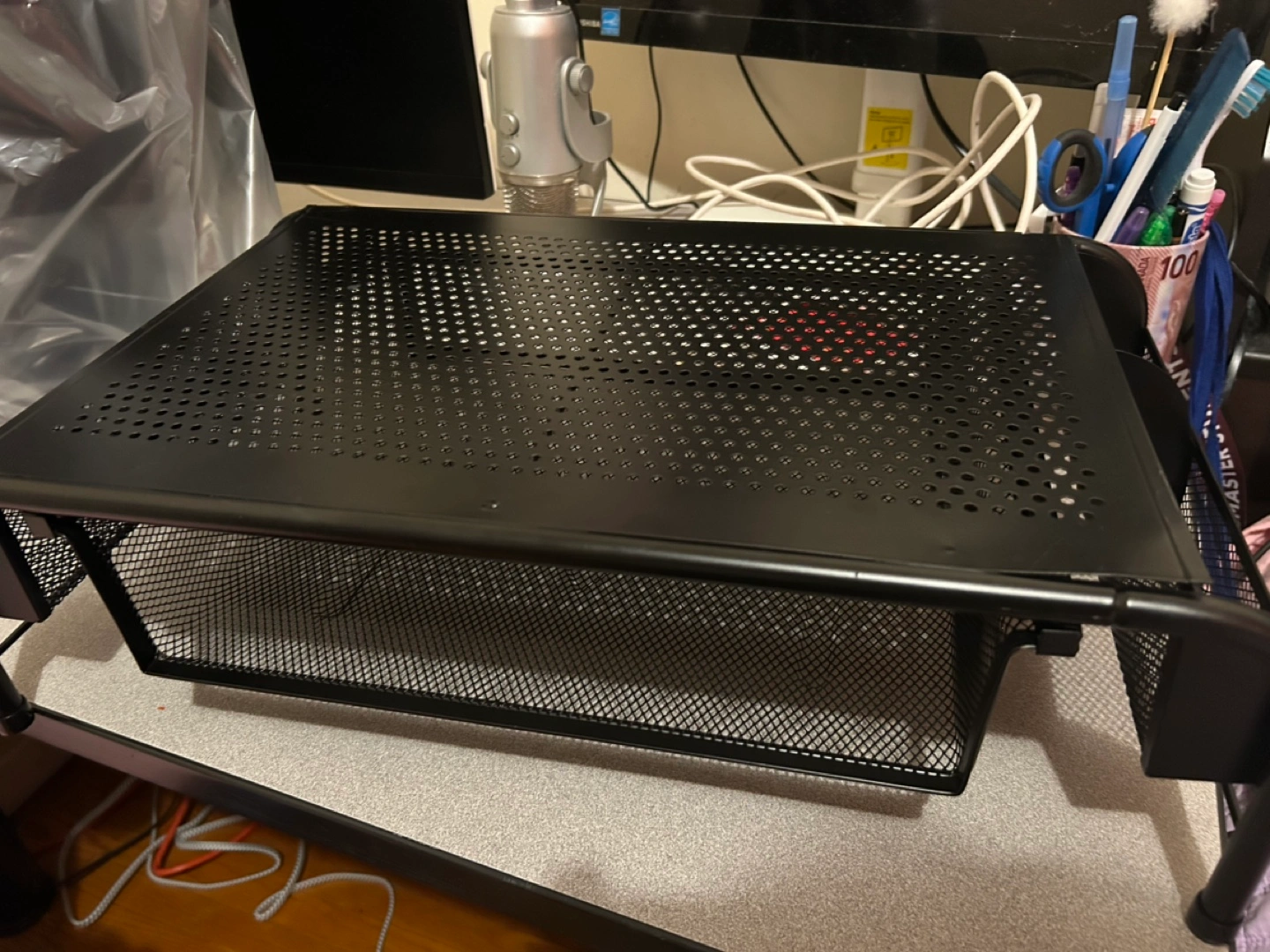 - $12 cash only please. Price is firm and not interested in trades. - Near 706 Queen St. West downtown Toronto pickup location. - Monitor Stand Riser with Organizer Draws - Black Colour, Very Good Condition