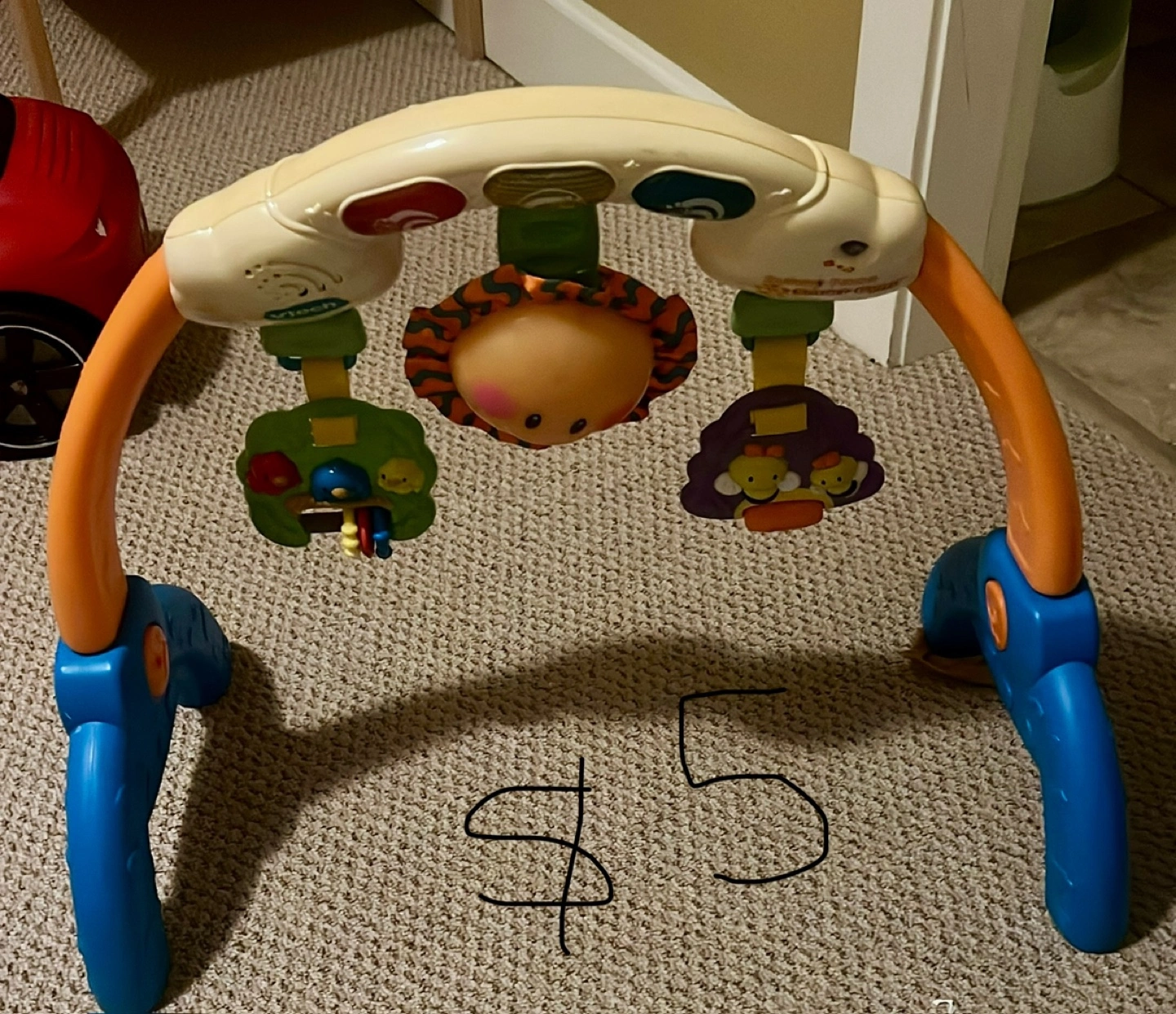 Infant play gym. Bright colours. Fun toys. Good condition.