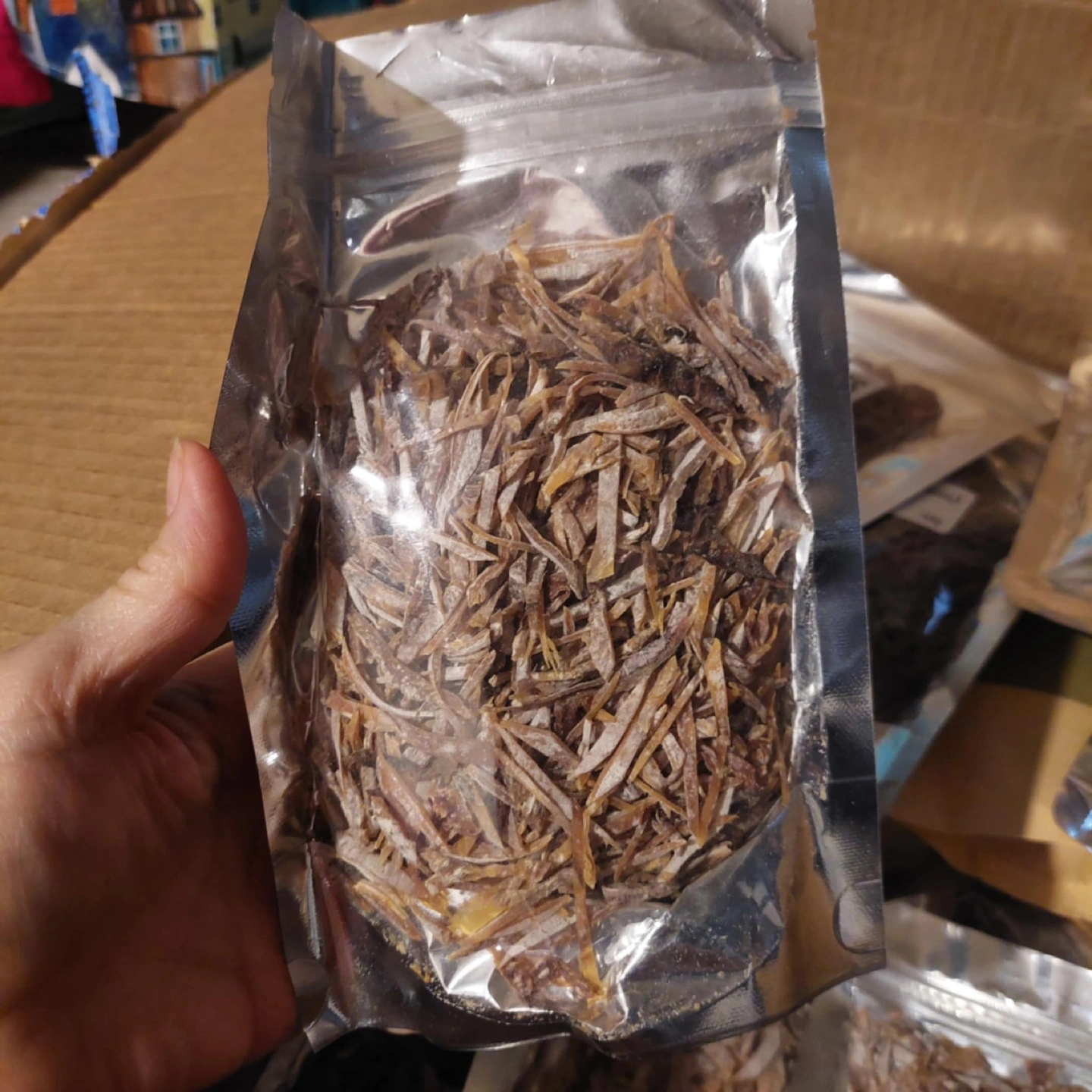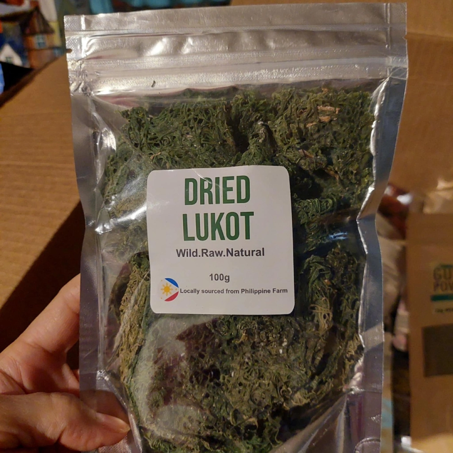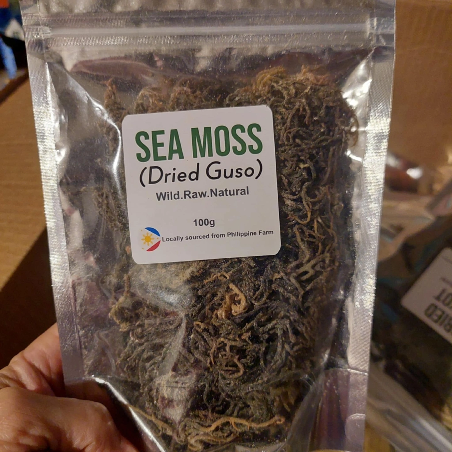 Variety of dried seafood and seaweed. Includes anchovies, dried fish, and two types of seaweed (sea moss and Lukot). All sourced from Philippine farms. Perfect for cooking or ingredient sourcing. 100g packages.