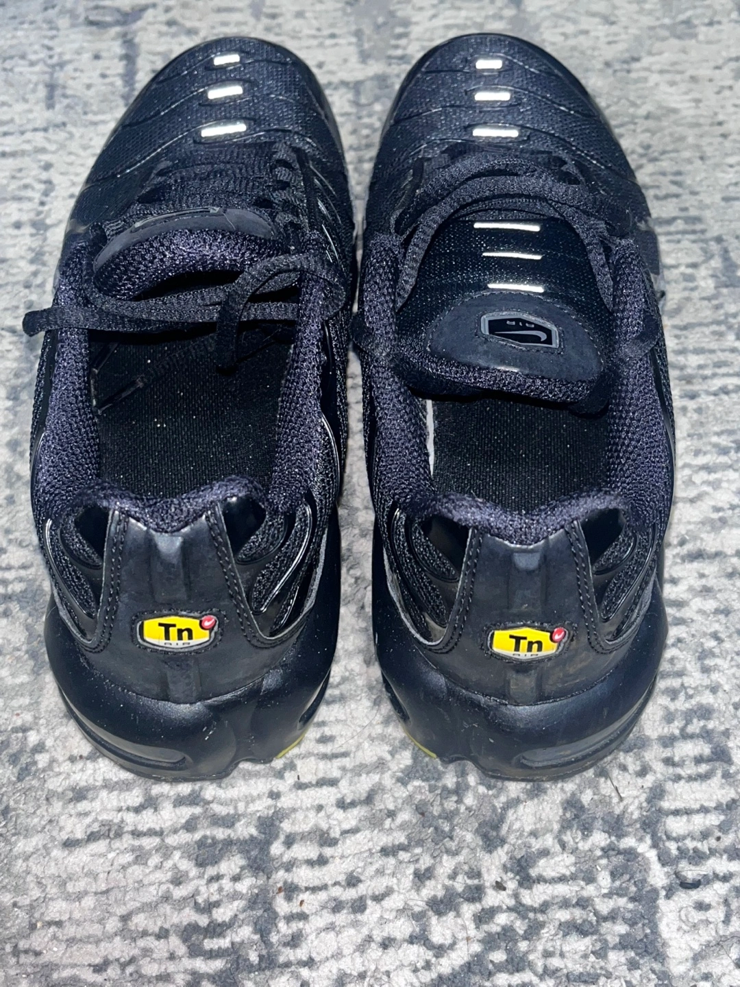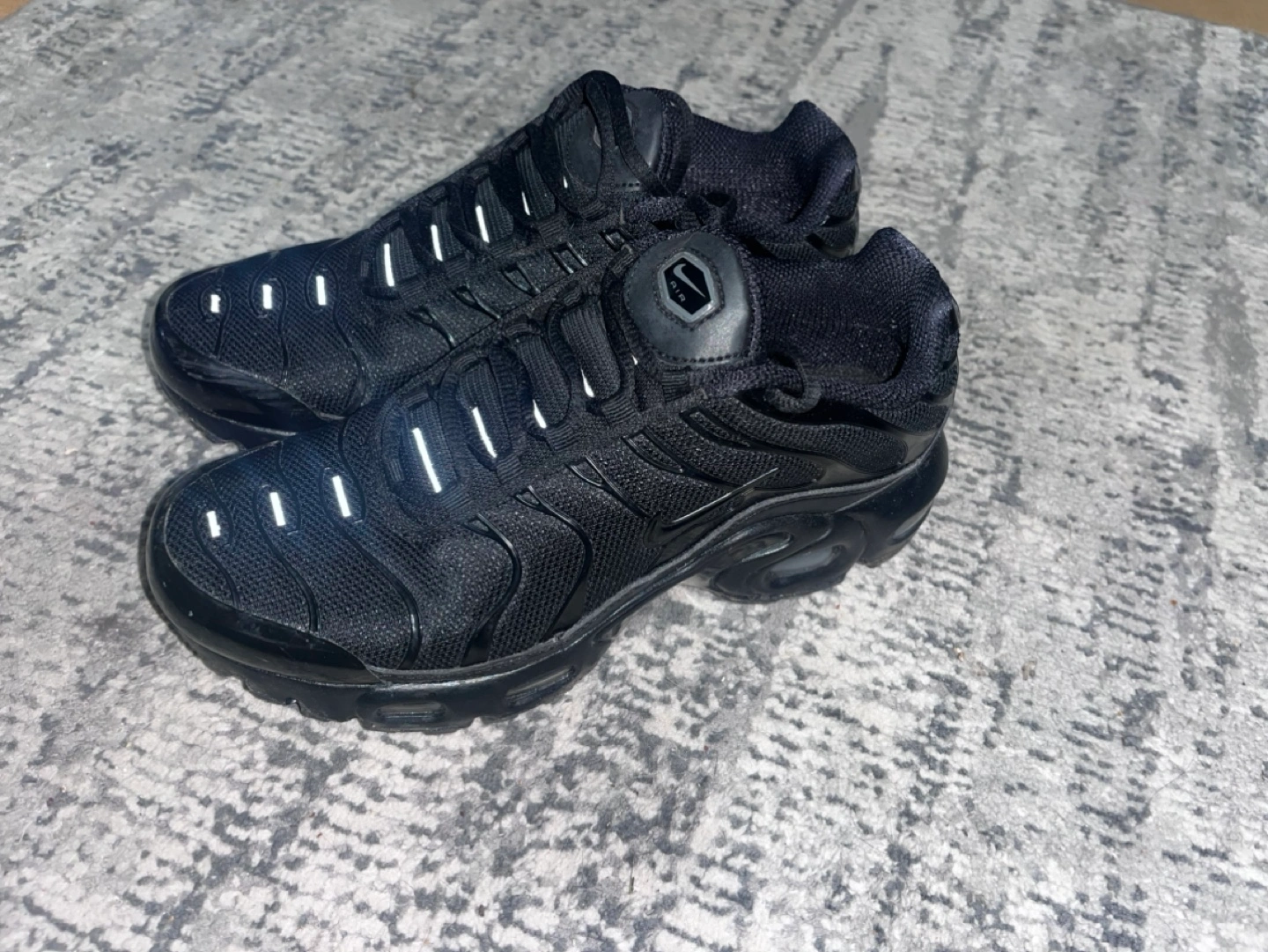 Nike Air Max Plus TN running shoes. Triple Black. Size 6Y (youth). Pre-owned. 38.5 Euro