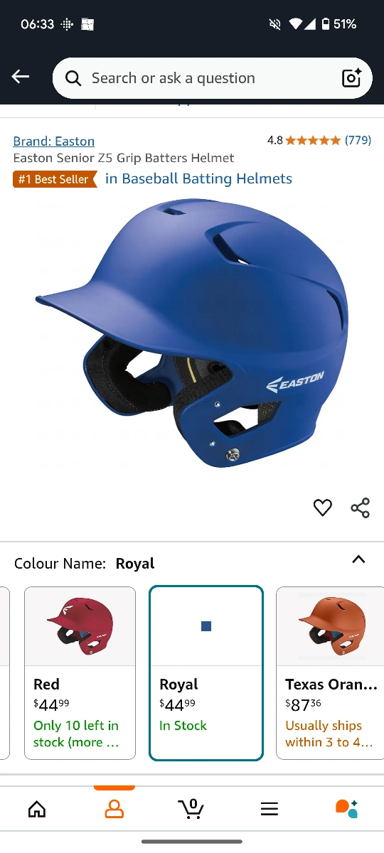 Easton Senior Z5 Grip Batters Helmet. Royal blue colour. New condition. Ready for the ball game! includes Facemask - a bonus for upcoming baseball games! Measurements: Size Senior Item Dimensions 22.9 x 22.9 x 33 Centimetres Item Weight 1 Pounds