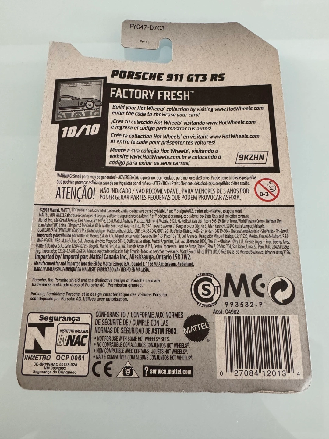 HOT WHEELS PORSCHE 911 GT3 RS 2018 DIECAST