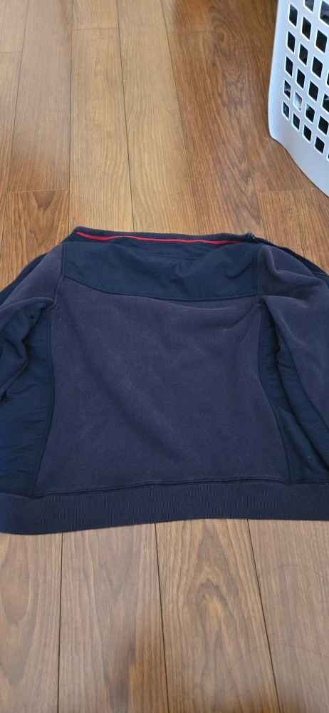 Size Large for kids 12-14 Hasn't been used in a few years, there are some threadings poking out near the sleeves