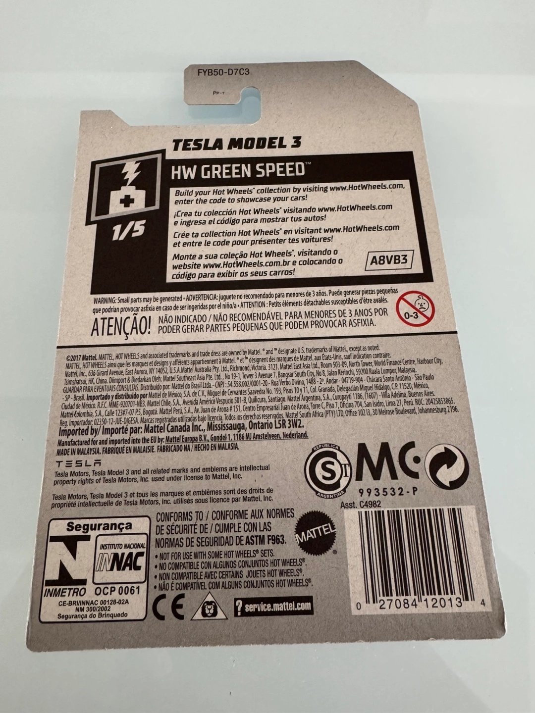 HOT WHEELS TESLA MODEL 3 WHITE DIECAST MINT
