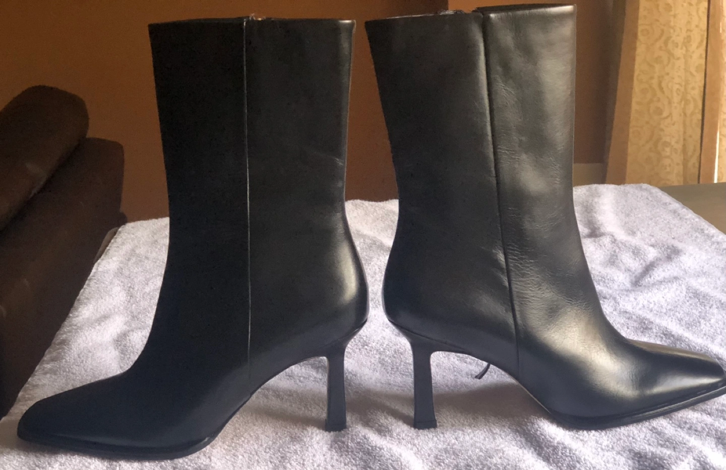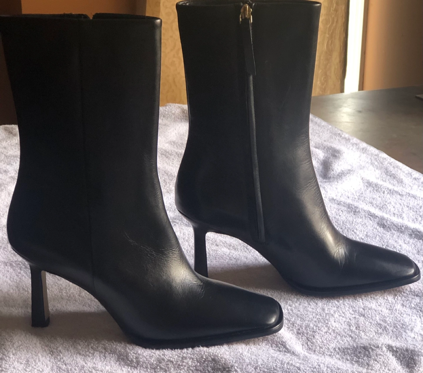 NEW Women's black leather ankle boots. Bottoms are not leather. Side leather zipper closure. Slight heel height 2.5’ Size 40 or 9/9.5 Retails for $179