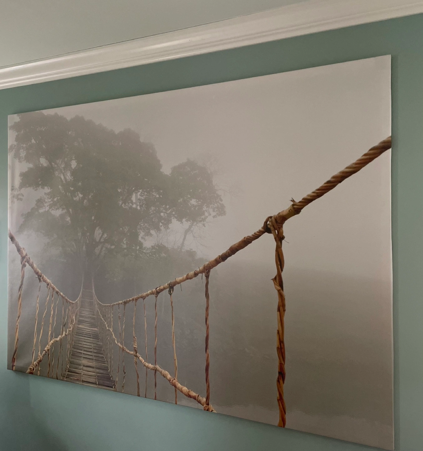 ◾️Stunning large canvas print. ◾️Depicts a rope bridge in a misty jungle setting. ◾️Excellent condition — no damage has just been hanging on our wall. ◾️Dimensions: 200 x 140 cm or 78 ¾” x 55” ⚠️ pick up from North Burnaby