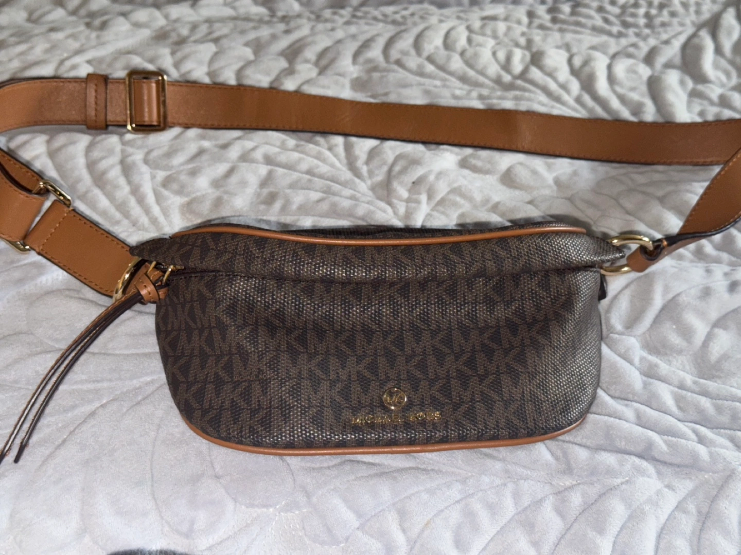 Small brown belt bag. Adjustable strap. Features MK logo. Zip closure. One main compartment. Like new condition Used only a handful of time Authentic Bag only no dust bag bought for 248$ plus tax