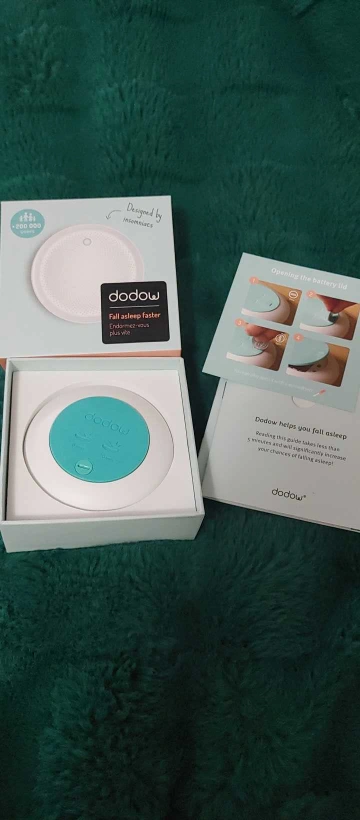 Dodow sleep aid. Helps you fall asleep faster. Includes instructions. Teal and white.