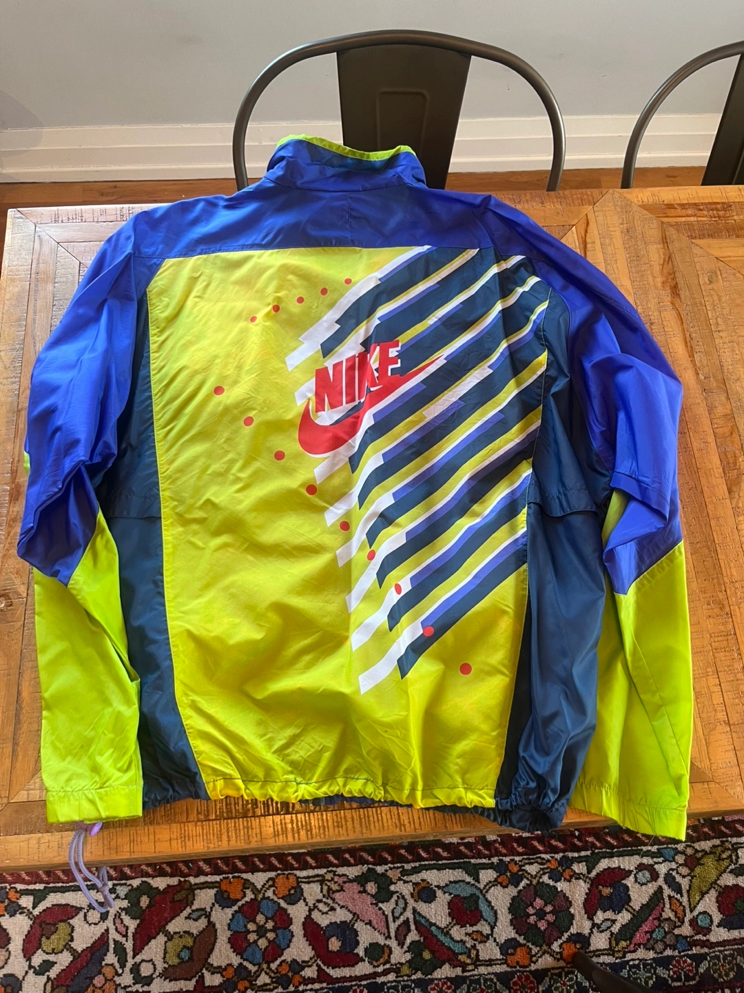 Vintage 1990's Grey Tag Nike Windbreaker Multi-Color Graphic Size XL. Colour-blocked design. Features a zip-up closure and drawstring hem. Delivery available, let me know if there are any questions. Please feel free to check out my other listings, happy to do a deal on multiple items! Pickup at Bathurst/Dupont