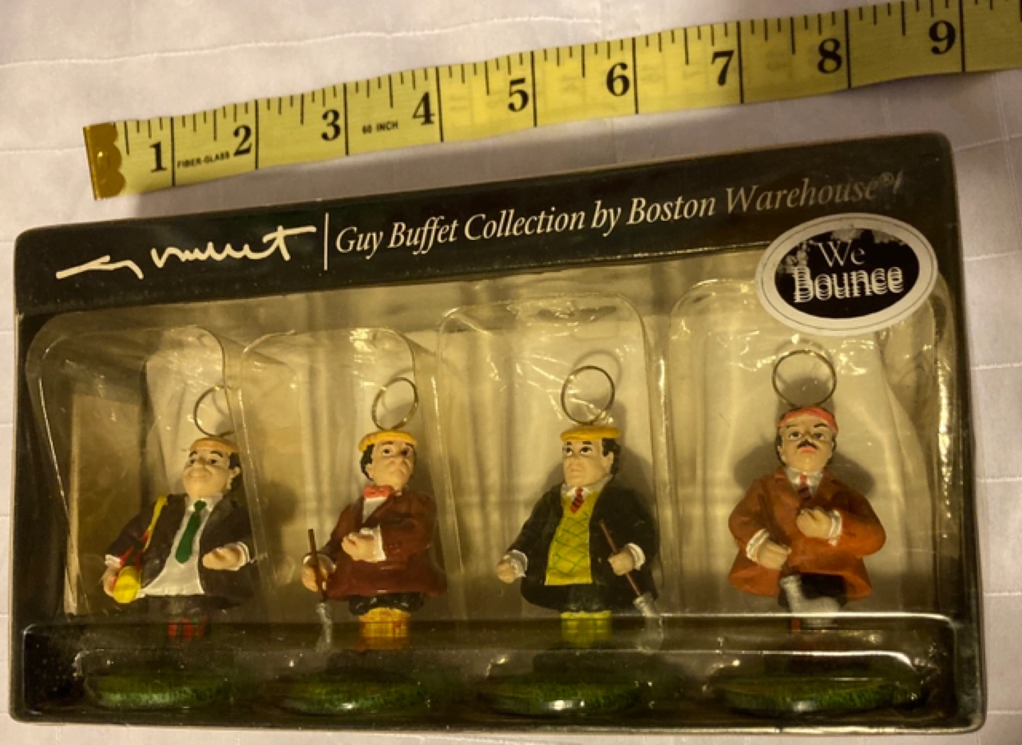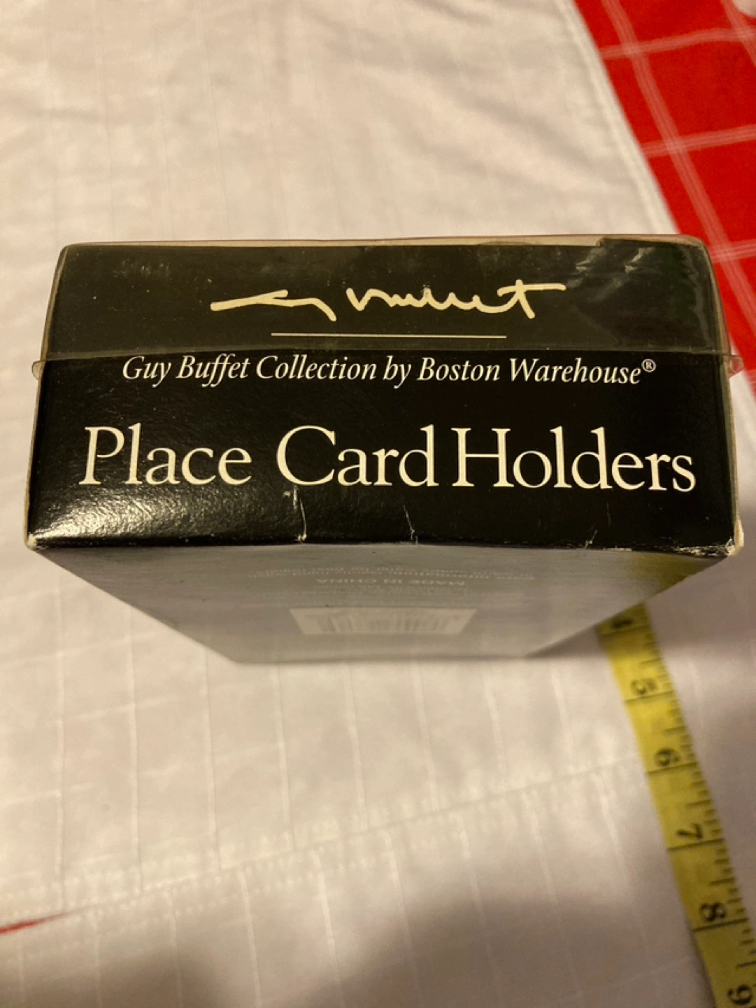 Set of four bobble head golfer place card holders. Includes ten place cards. Collectible figurines. New in box.
