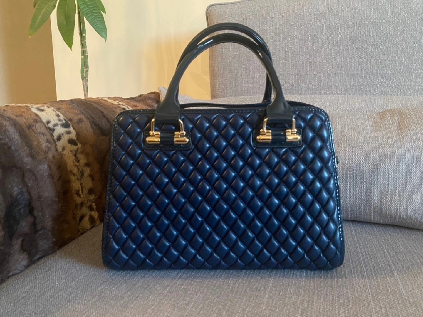 Item Available. LEAVE CONTACT NUMBER. Pick up only near South Kingsway and The Queensway. Check my other listings - more items for sale. Open to trades – please specify your offer. Beautiful dark blue quilted handbag. Features gold-toned hardware. Includes a removable shoulder strap. Perfect for everyday use.