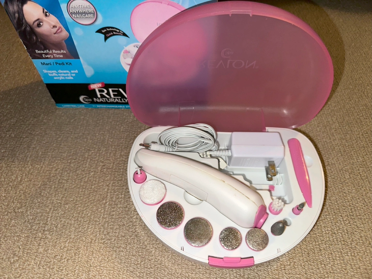 Item Available. LEAVE CONTACT NUMBER. Pick up only near South Kingsway and The Queensway. Check my other listings - more items for sale. Open to trade – please specify offers. Electric nail care kit with interchangeable attachments, that comes with carrying case, and power adapter. Shapes, cleans, and buffs, natural or acrylic nails. Missing 1 drill bit.