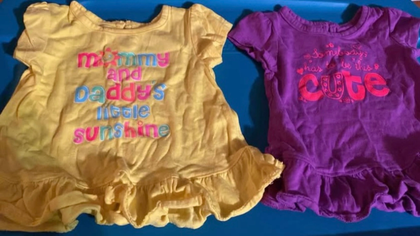 Two cute baby girl t-shirts. Yellow shirt says Mommy and Daddy's Little Sunshine. Purple shirt says Somebody’s has to be this cute. Size 3 months. No delivery. No holds. As is no refunds. Price is firm.