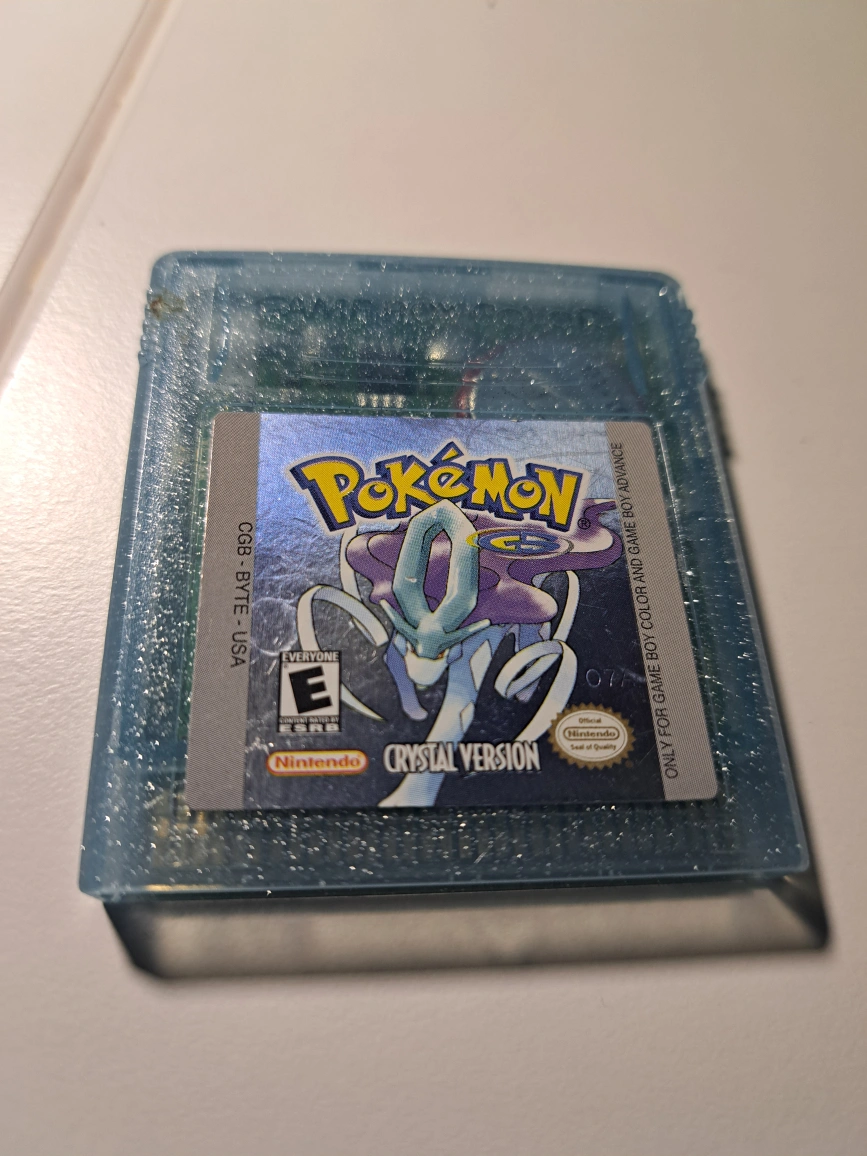 Original Pokémon Crystal Version game cartridge for Game Boy Color.