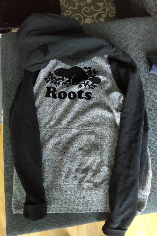 Grey and black Roots hoodie. Small size. Features a beaver logo. Good condition. cozy with soft comfort touch extremely clean from sfpf home!! Like new pick up Weston rd@401 may accommodate at various locations within distance only.