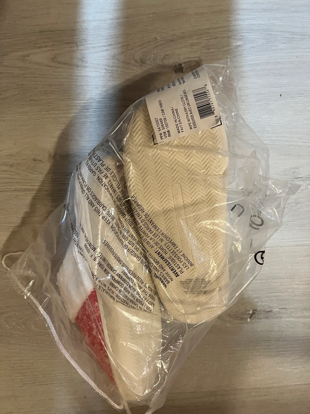Cozy slippers, red and white pattern. Fluffy white lining. Size 7-8. New with tags.