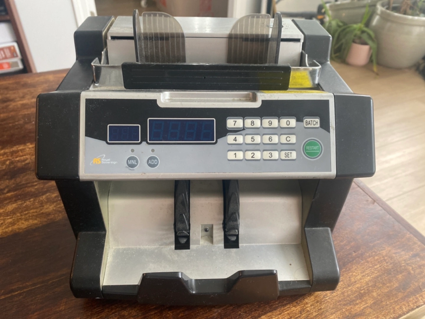 Used bill counter. Features a digital display and numerical keypad. Machine works but it has no manual. Not sure how to use it.