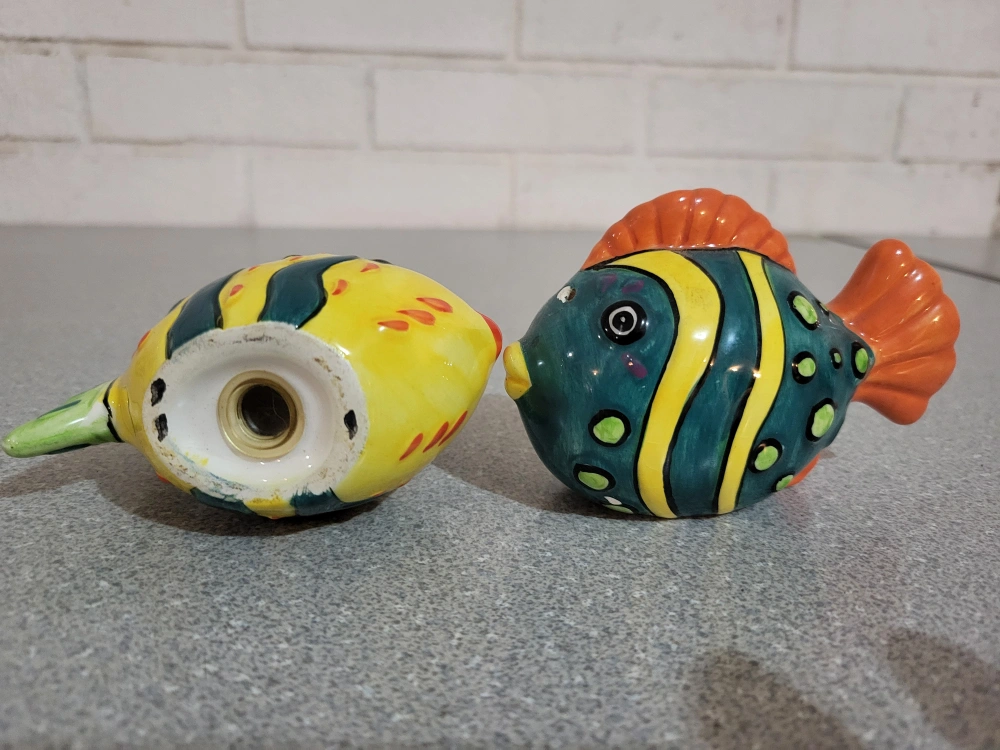 Available for quick pick up dntwn St Catharines. Delivery Available at buyers expense. Adorable vinyage ceramic salt and pepper shakers. Hand-painted tropical fish design. Bright colours. Perfect for kitchen décor! 🐠 *Are you looking for affordable, indoor storage for personal or business items in dntwn St. Catharines? Workspace for your craft? Have serious interest? Please inquire :)