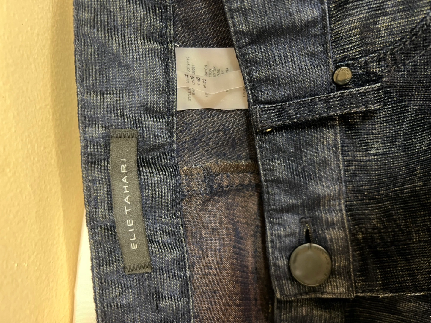 Elie Tahari dark wash corduroy pants. Size 12. Slim fit. Ankle-length. Side zipper detail. Excellent condition. Waist- 17.5 Inside leg- 29 Outside length- 38