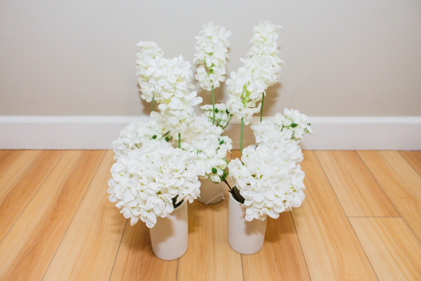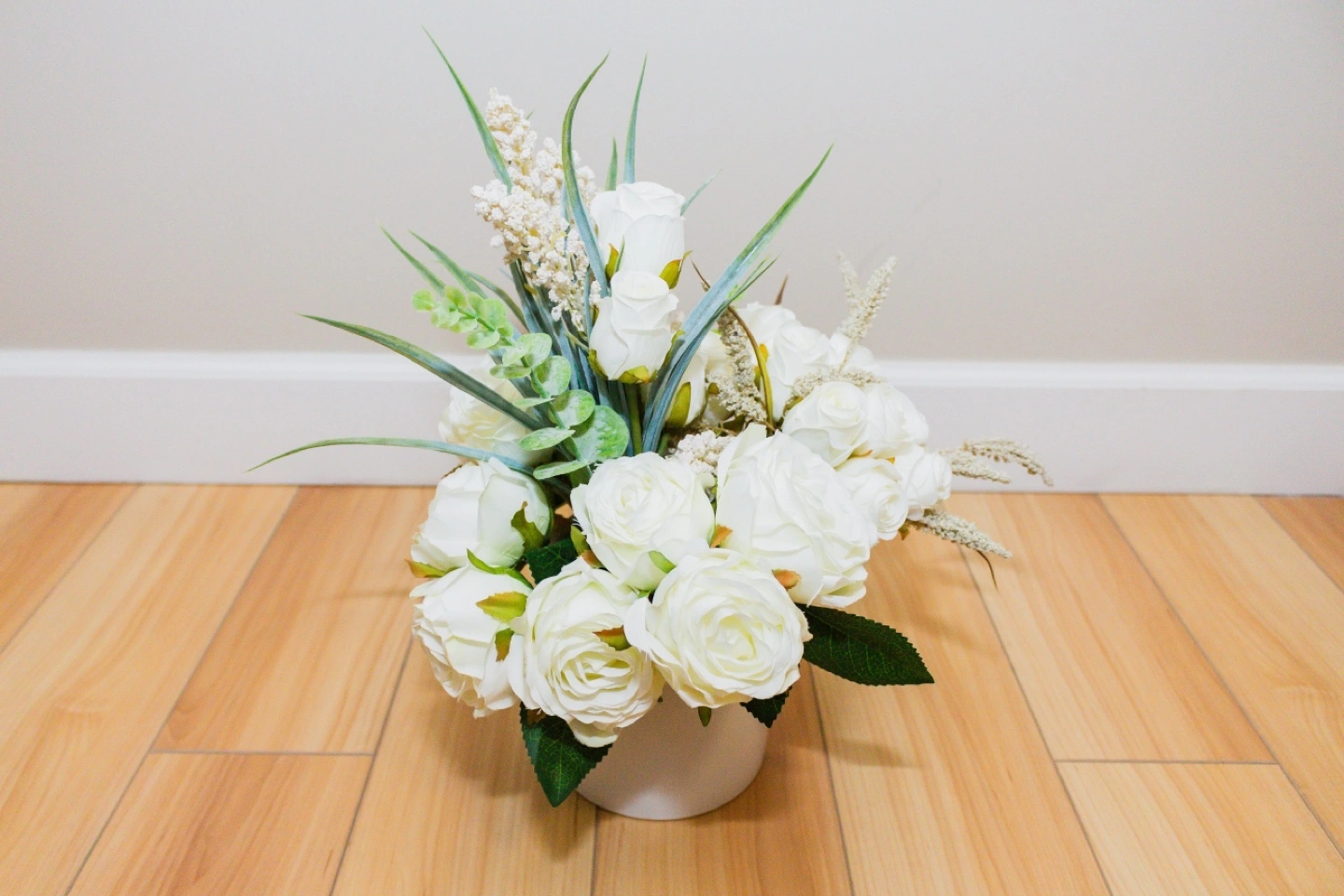 Five artificial flower arrangements Various white flowers including roses, hydrangeas, and peonies Vases not included Perfect for home décor or events ‼️MUST TAKE ALL! $200 or Best Offer (CASH ONLY)‼️