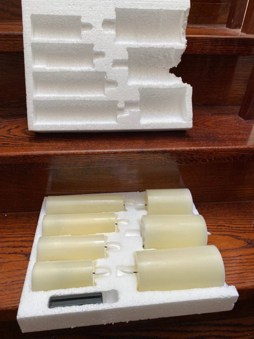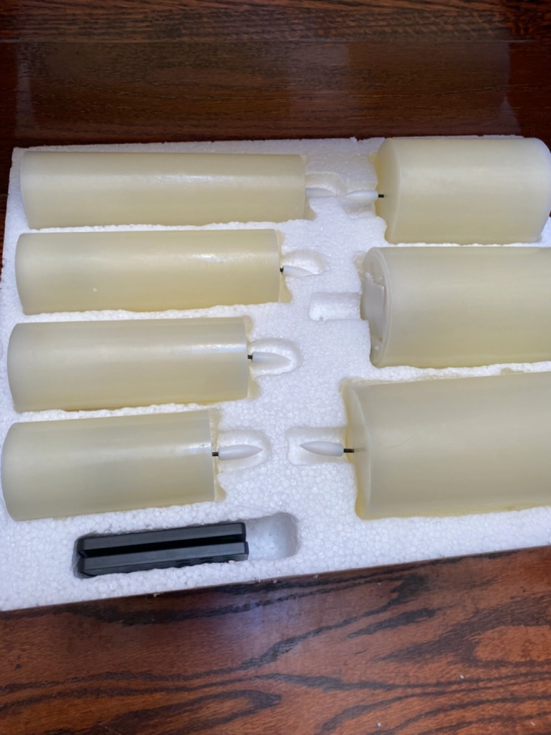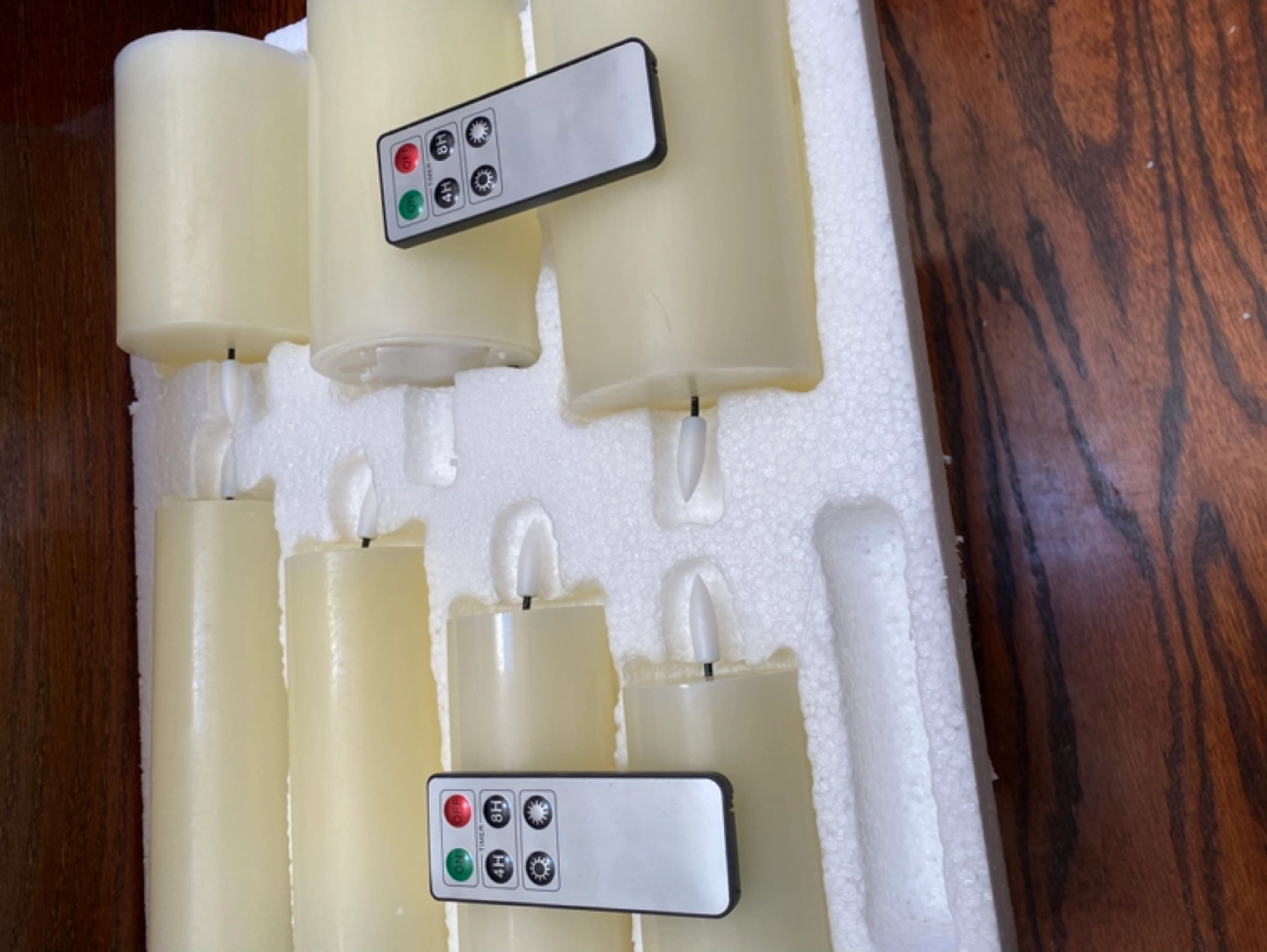 Set of eight LED candles. Includes two remotes. Flameless design. Perfect for ambiance. Cash only