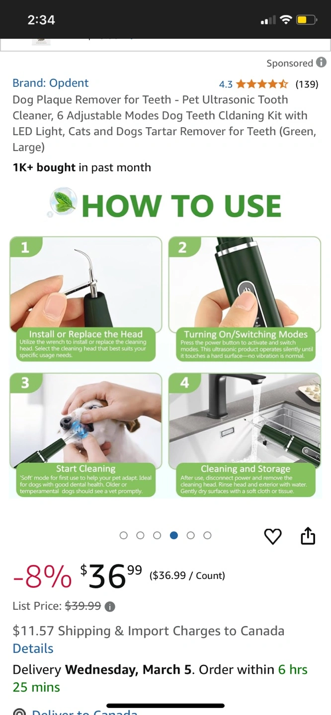 New Pet teeth cleaner. Ultrasonic. Six adjustable modes. LED light. Removes plaque, tartar and stains. Waterproof. Includes extra tips and charging cable. Cash only