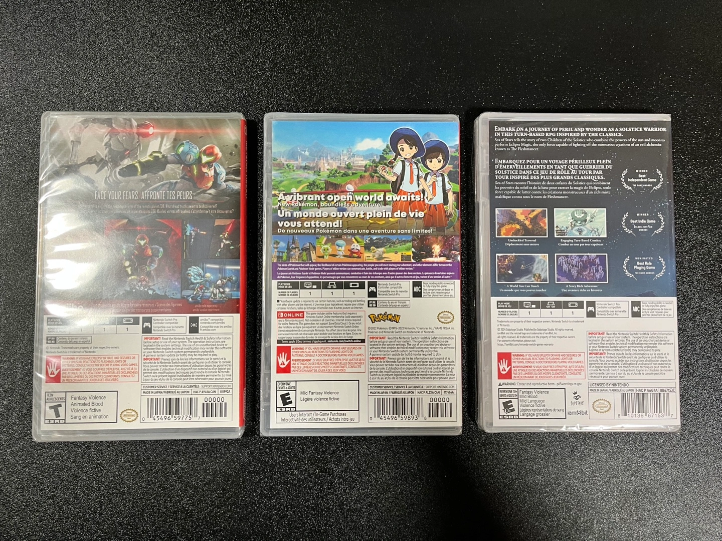 New and factory sealed Nintendo Switch games. Prices or trade: Metroid Dread - $70 Pokemon Scarlet - SOLD Sea of Stars - SOLD Open to trading Metroid Dread for the following (new/used in complete and good condition for Switch): - Zelda Echoes of Wisdom - Paper Mario: The Thousand Year Door Pick up or meet up only, at North York Centre or Yonge Sheppard Centre area. Cash preferred, no holds.