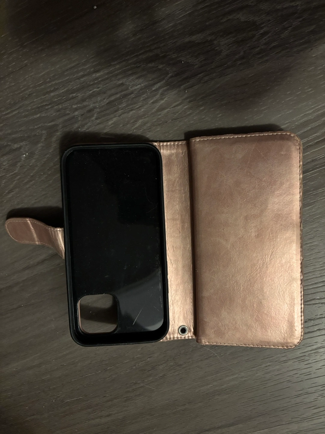 Rose gold iPhone wallet case. Multiple card slots. Includes a PopSocket. Used condition.IPhone 12 In great shape! Pick up and cash!