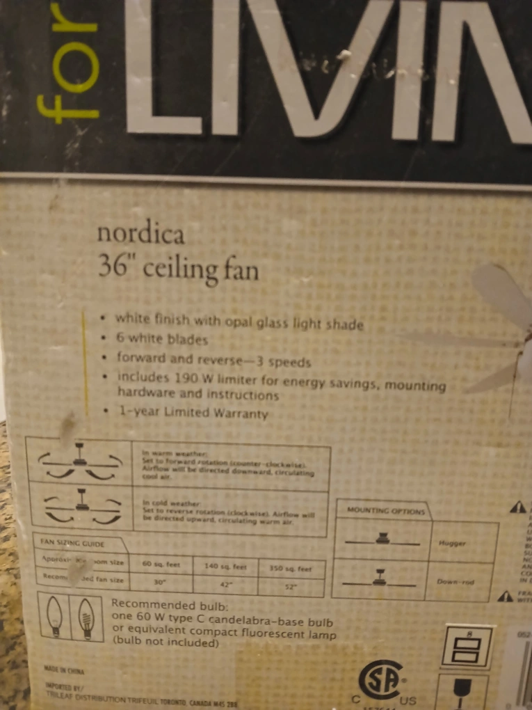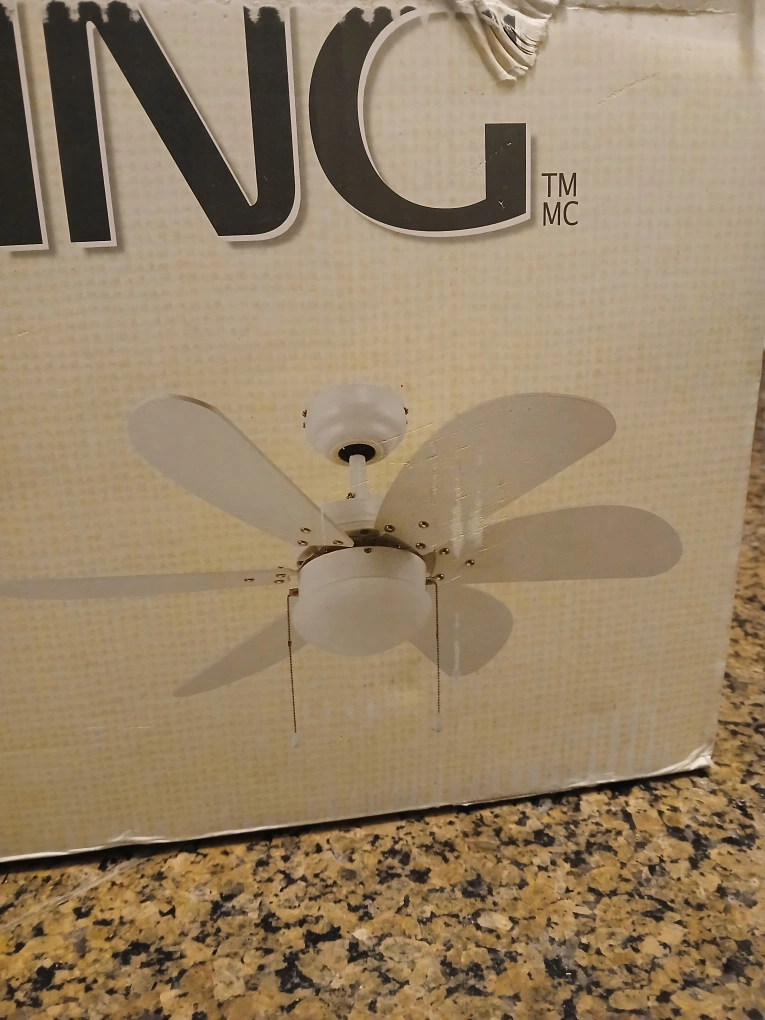brand new, never used! The For Living Nordica Reversible 6-Blade Ceiling Fan with Lighting provides efficient air circulation, enhancing comfort in any room. Ideal for smaller spaces, this fan helps maintain a balanced atmosphere throughout the year. Its classic white finish and contemporary design seamlessly blend into bedrooms, kitchens, or living areas, adding both comfort and style to your home while complementing modern décor. The compact size makes it a versatile choice for various settings. 6 reversible blades provide precise airflow control Frosted glass shade for a stylish look Dual-mount capability for versatile installation Requires (x1) 60W type C bulb (not included) Flush mount height: 10-3/4" (273 mm) for compact spaces Includes hanging hardware for easy setup Blade Dimensions: 36" (91.4 cm) worth $130+tax