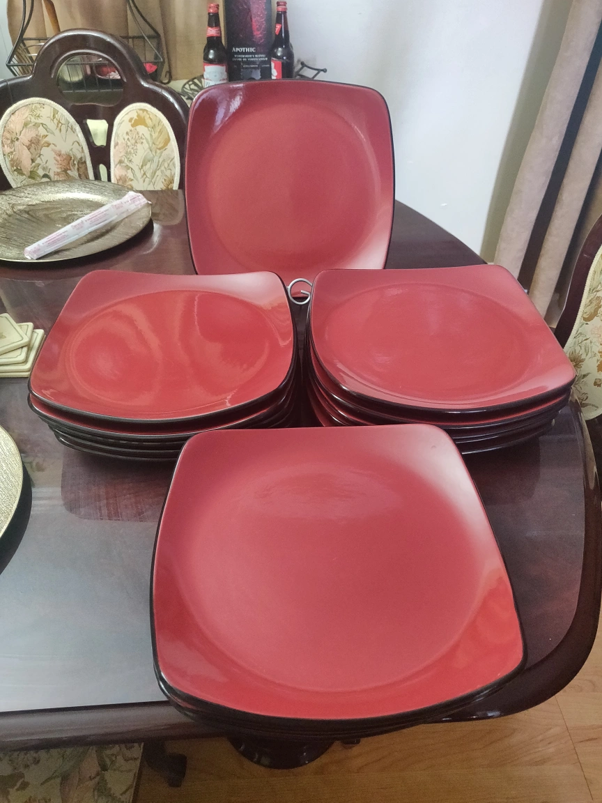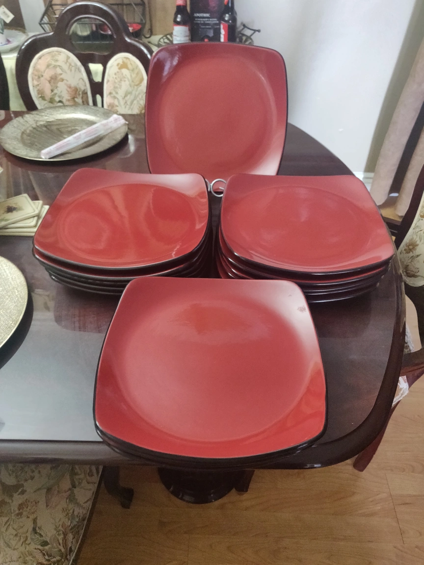 15 dinner plates used twice for event. in great condition. microwave and dishwasher safe. $4 each or $50 for all