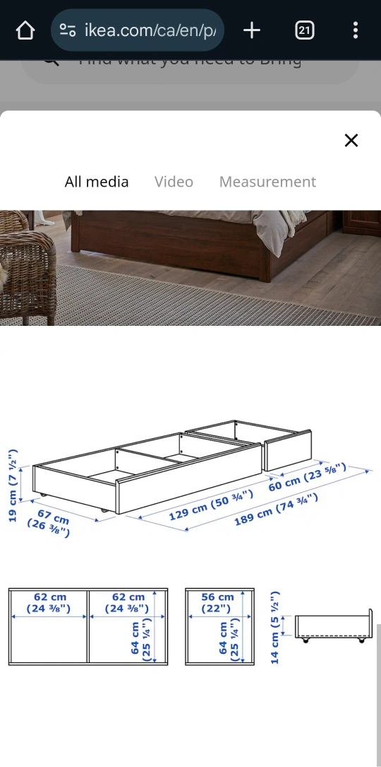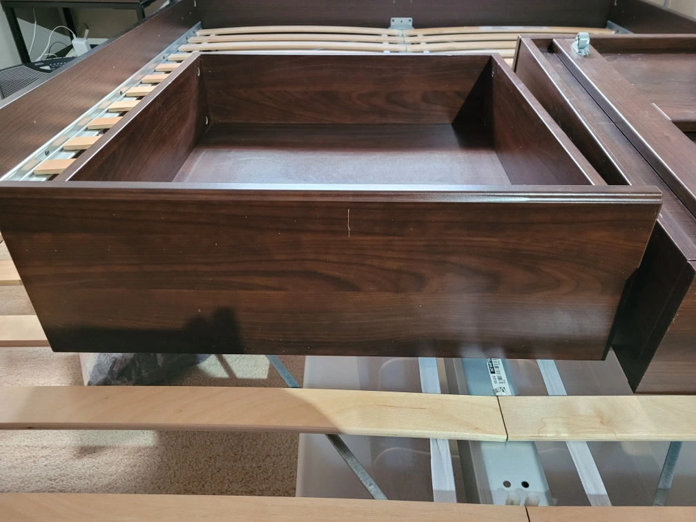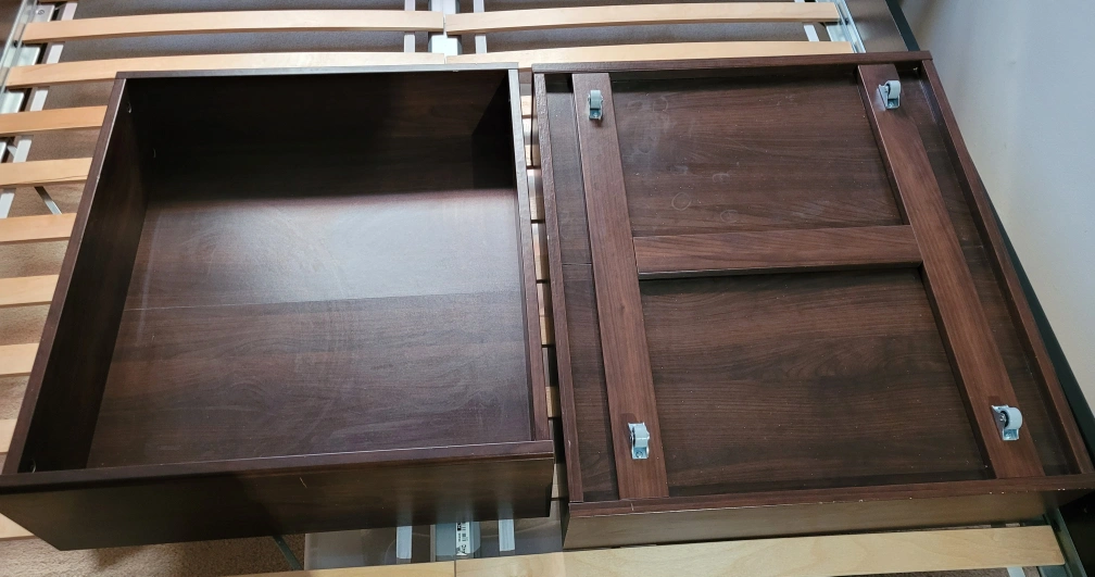 Two brown underbed storage drawers. Great for extra storage space. Suitable for full, double, twin, or single beds. have wheels, and slide very easily. 60x67x19 cm each $15 each